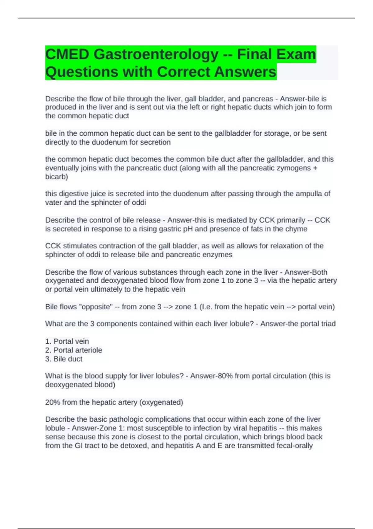What is the blood supply for liver lobules? - Answer-80% from portal circulation (this is