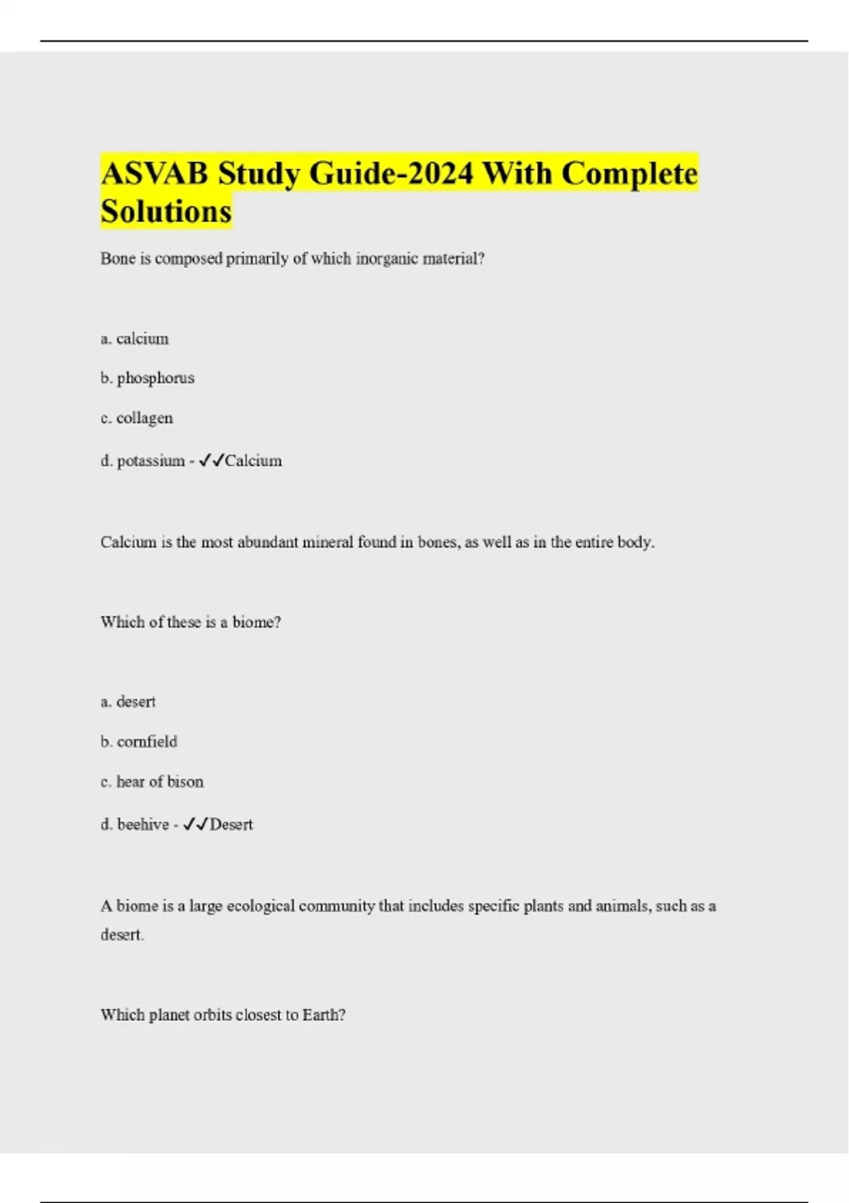 ASVAB Study Guide-2024 With Complete Solutions