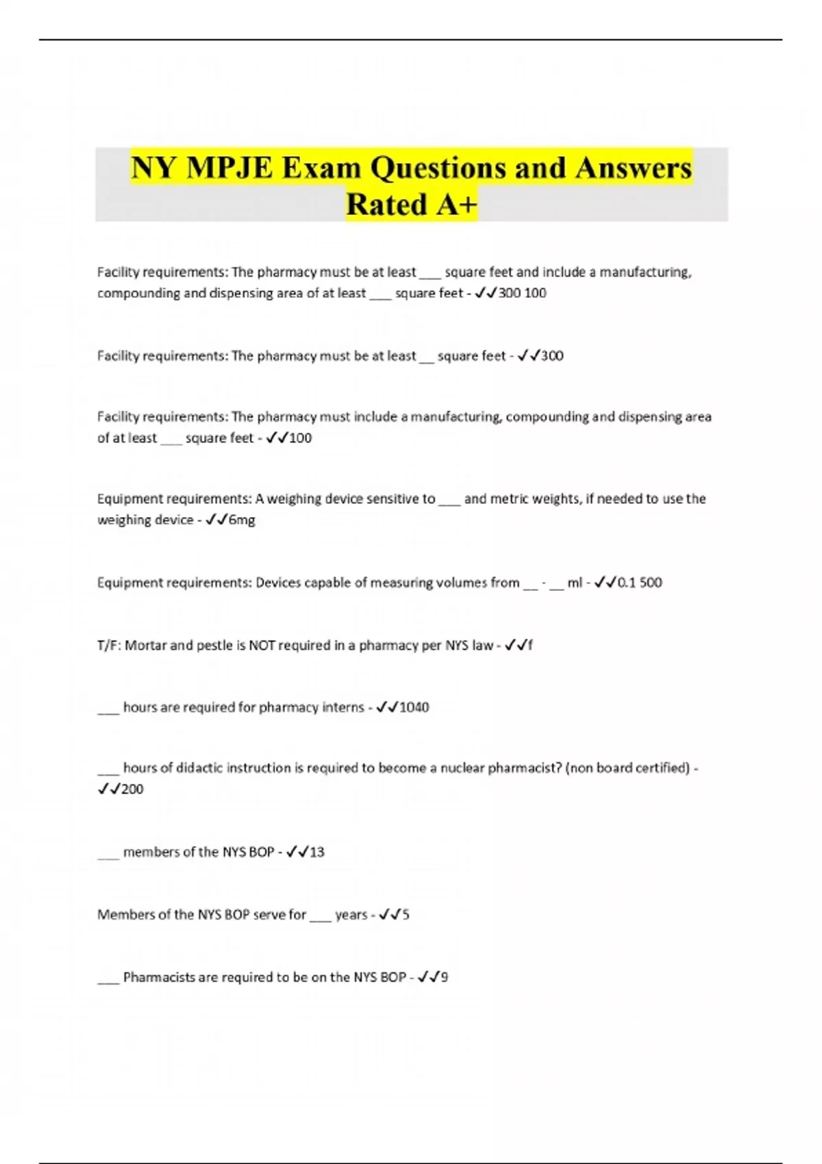NY MPJE Exam Questions and Answers Rated A+