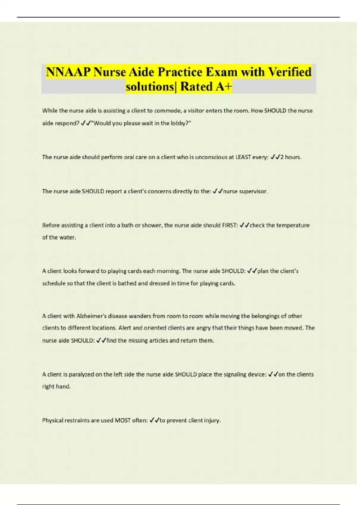 NNAAP Nurse Aide Practice Exam with Verified solutions| Rated A+