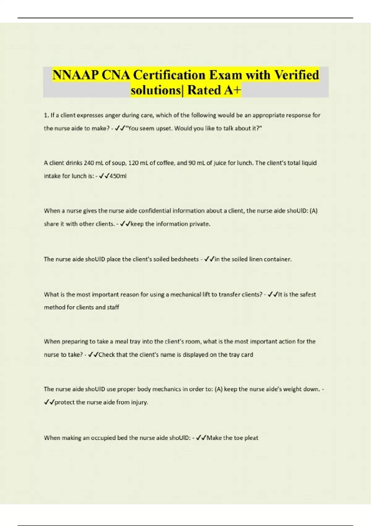 nnaap cna certification exam with verified solutio