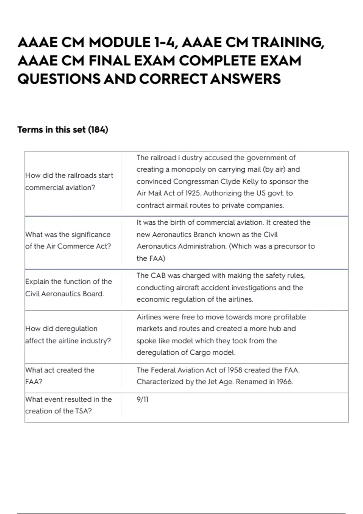 AAAE CM MODULE 1-4, AAAE CM TRAINING, AAAE CM FINAL EXAM COMPLETE EXAM QUESTIONS AND CORRECT ANSWERS