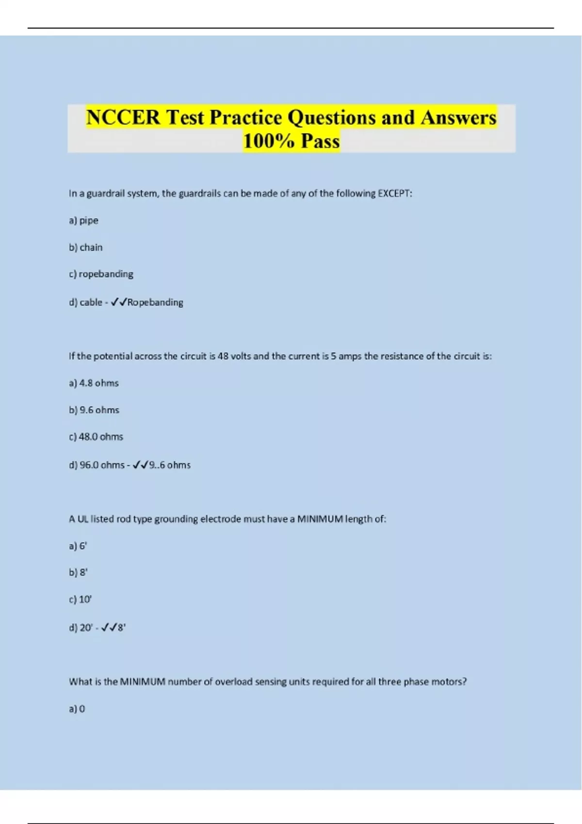 NCCER Test Practice Questions and Answers 100% Pass