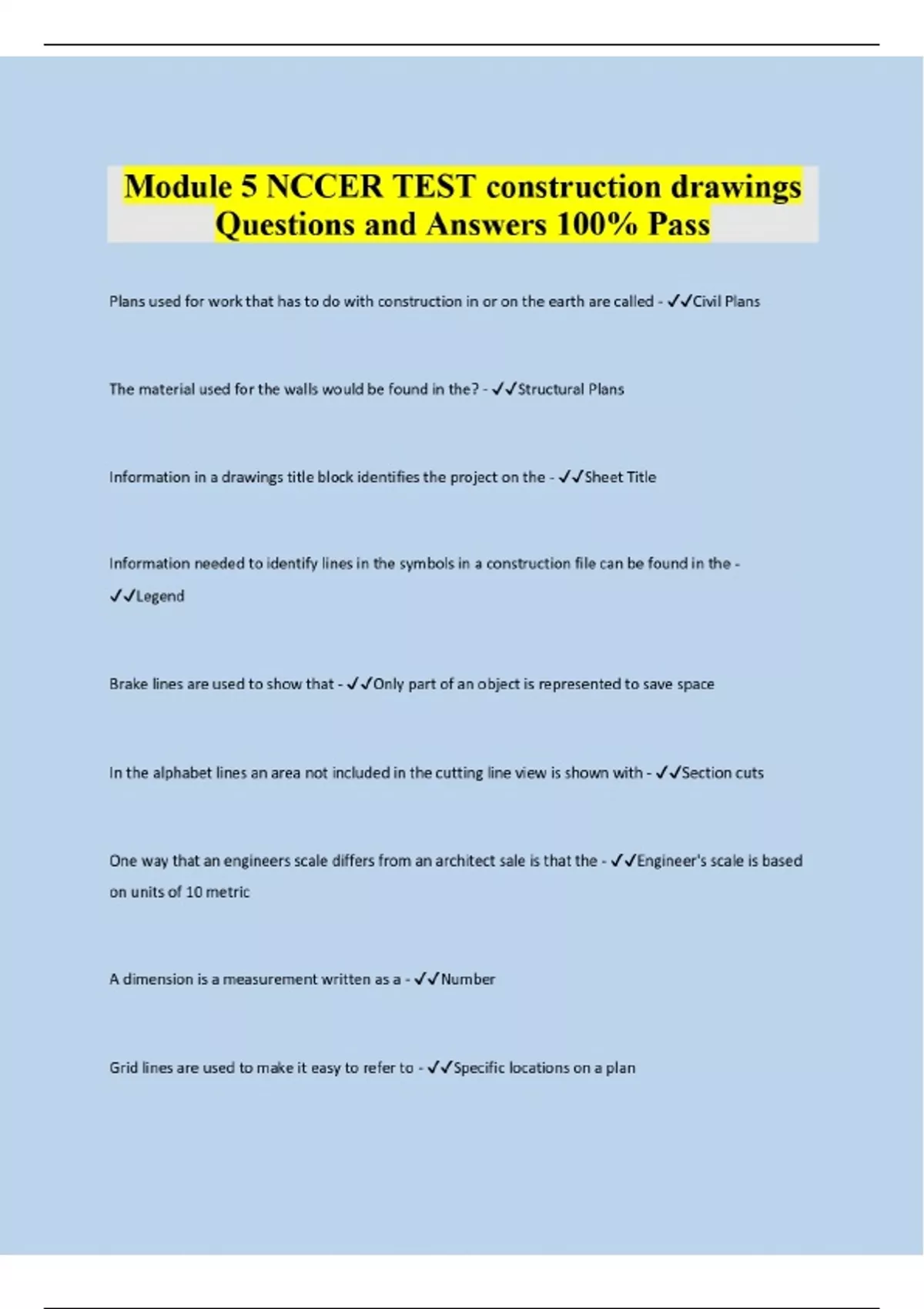 Module 5 NCCER TEST construction drawings Questions and Answers 100% Pass