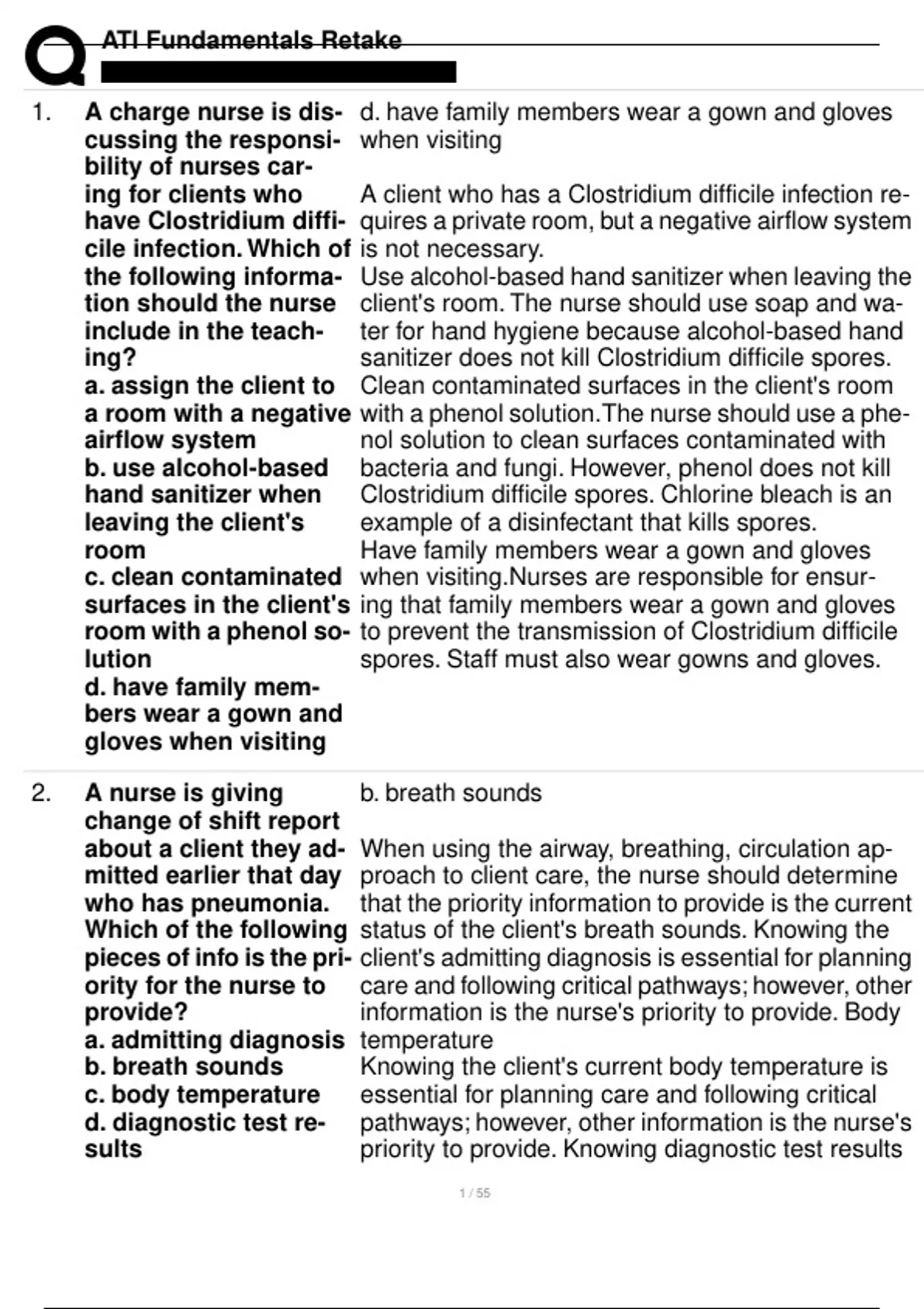 1. A charge nurse is dis- d. have family members wear a gown and gloves