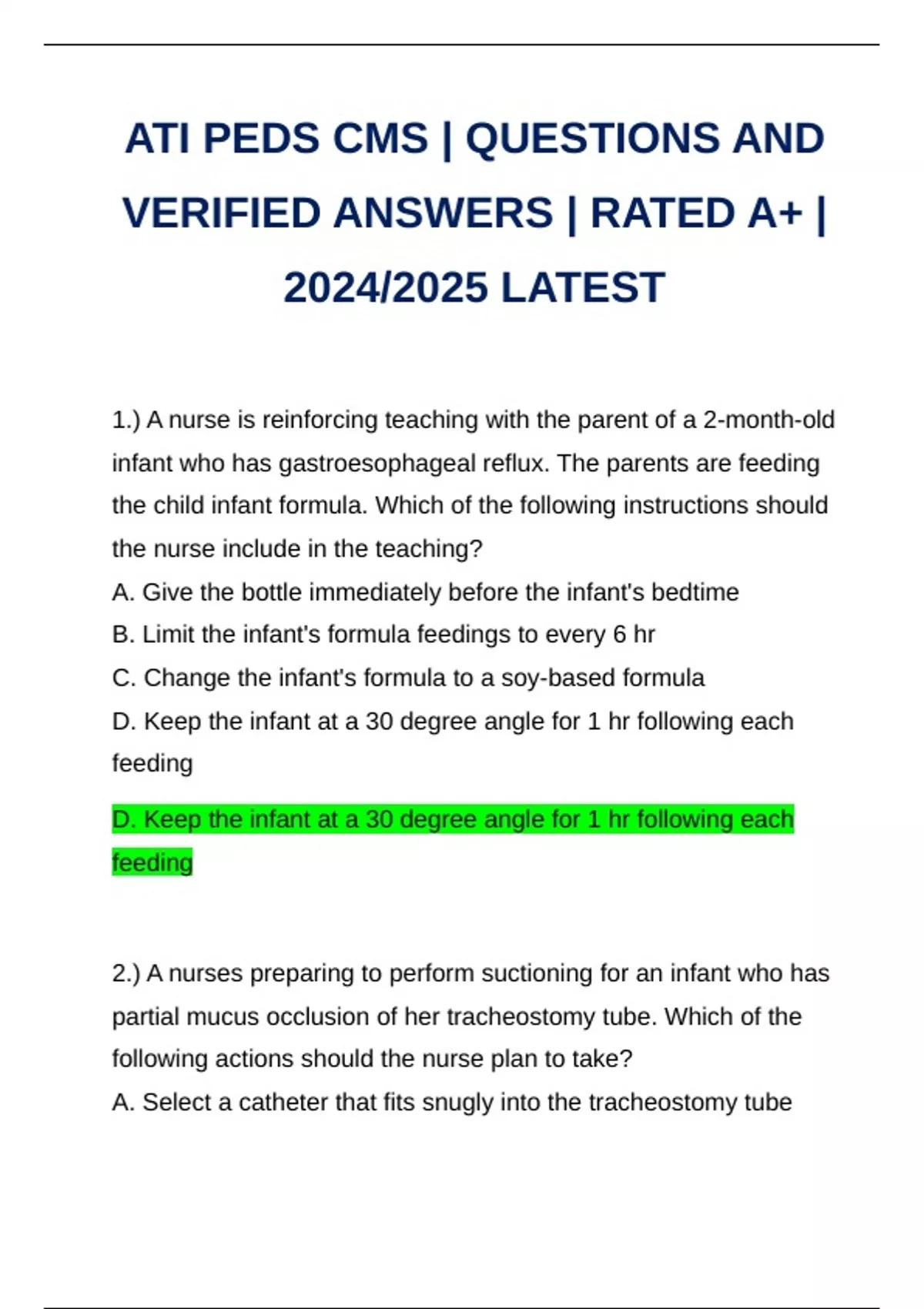 ATI PEDS CMS | QUESTIONS AND