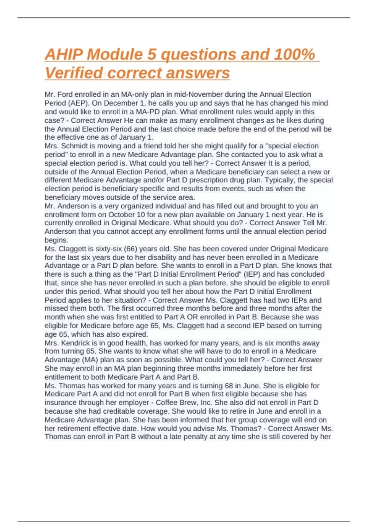 Advantage (MA) plan as soon as possible. What could you tell her? - Correct Answer