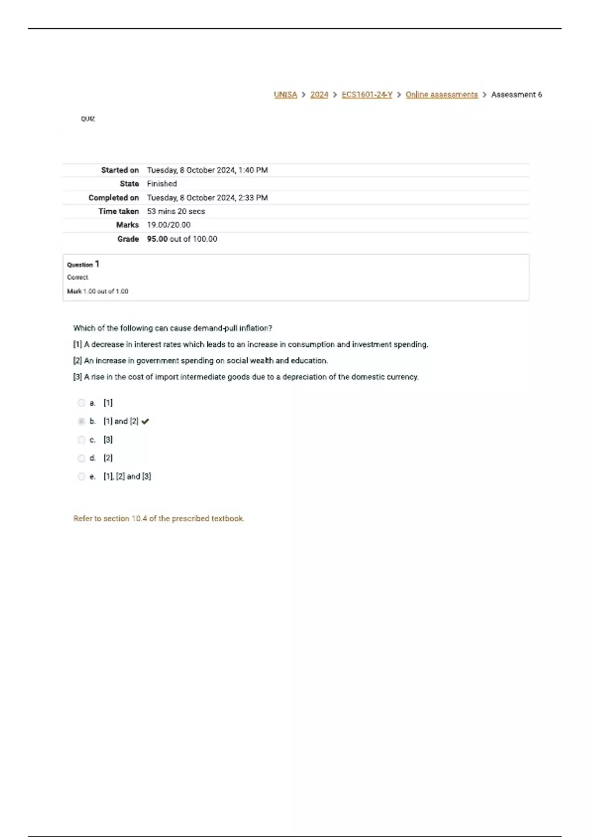 ECS1601 Assignment 6 Semester 2 2024 (95%) Exam (elaborations) Economics IB (Macroeconomics I)