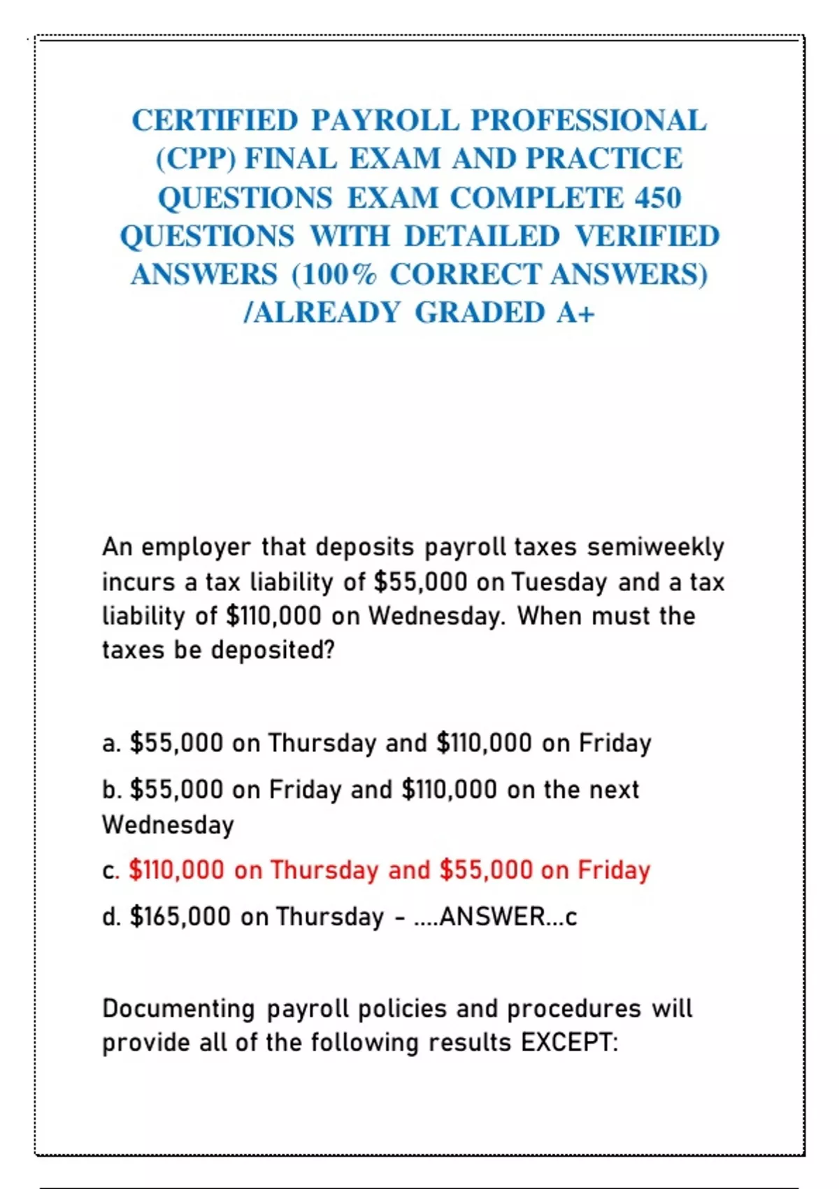 d. $165,000 on Thursday - ....ANSWER...c