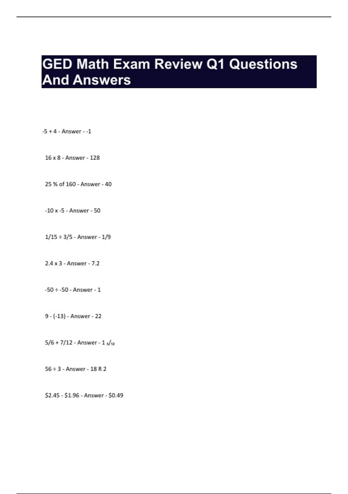 GED Math Exam Review Q1 Questions And Answers