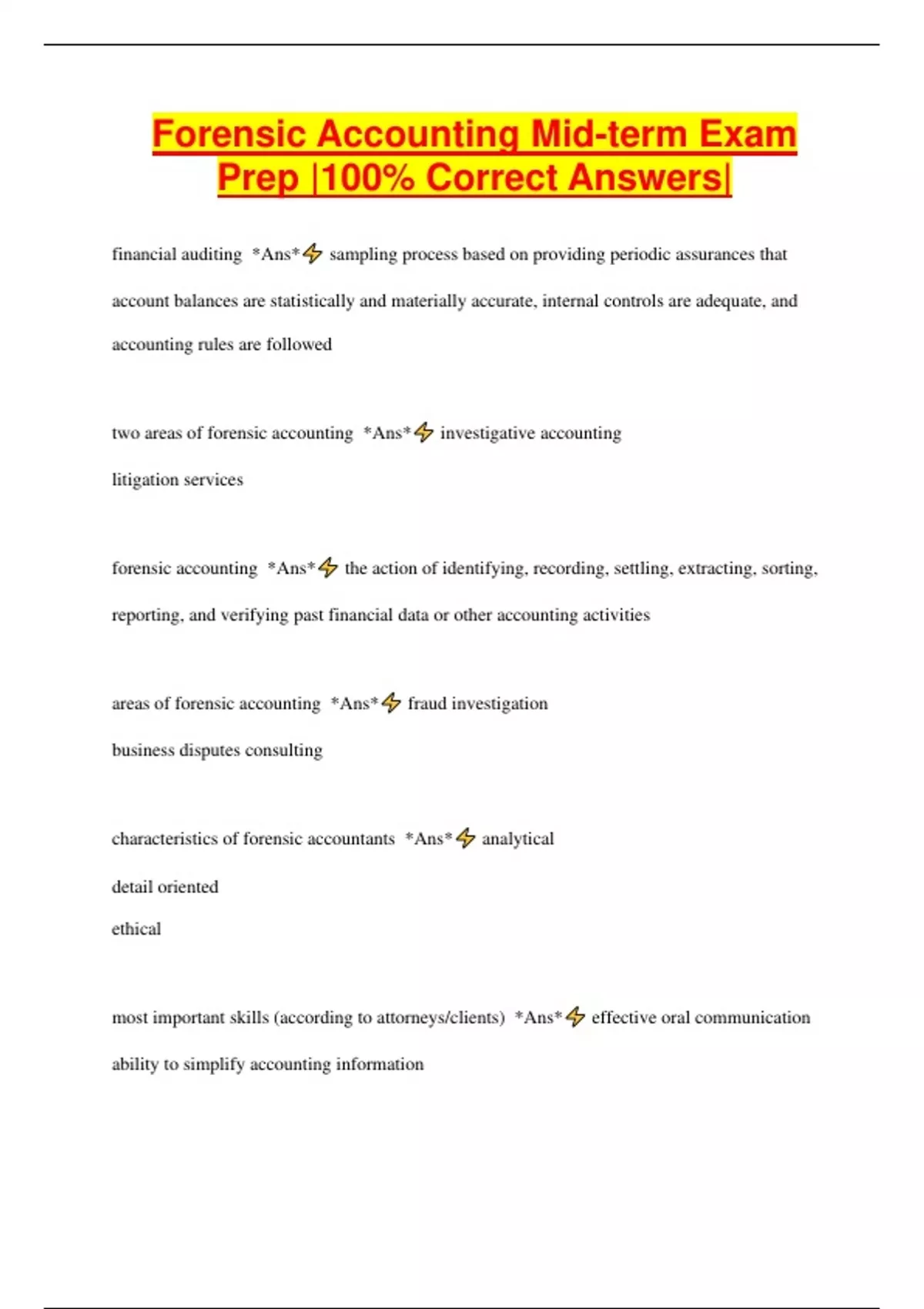 ,important skills (according to forensic accountants) *Ans* ability to identify key issues