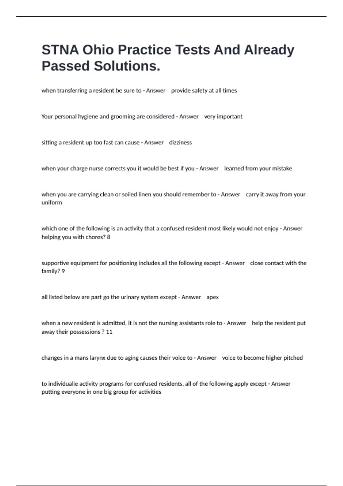 when transferring a resident be sure to - Answer provide safety at all times
