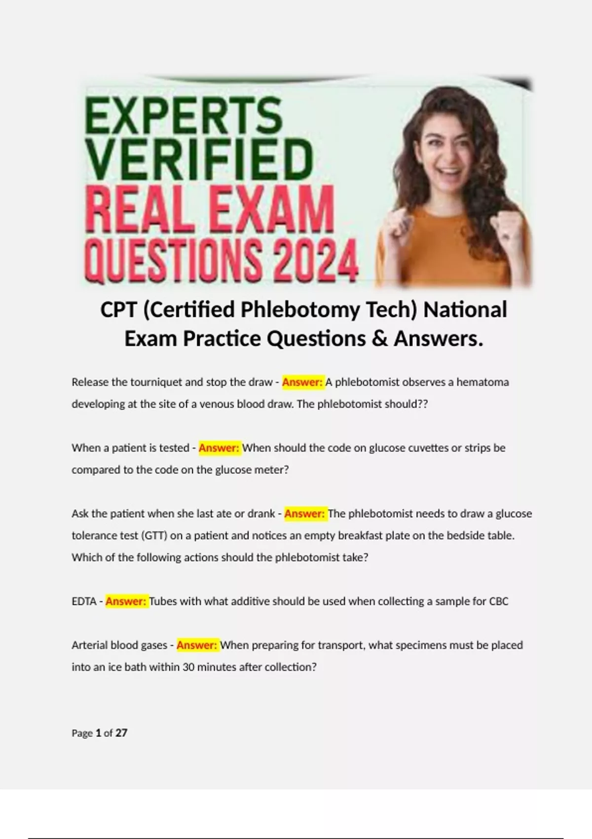 CPT (Certified Phlebotomy Tech) National Exam Practice Questions & Answers.