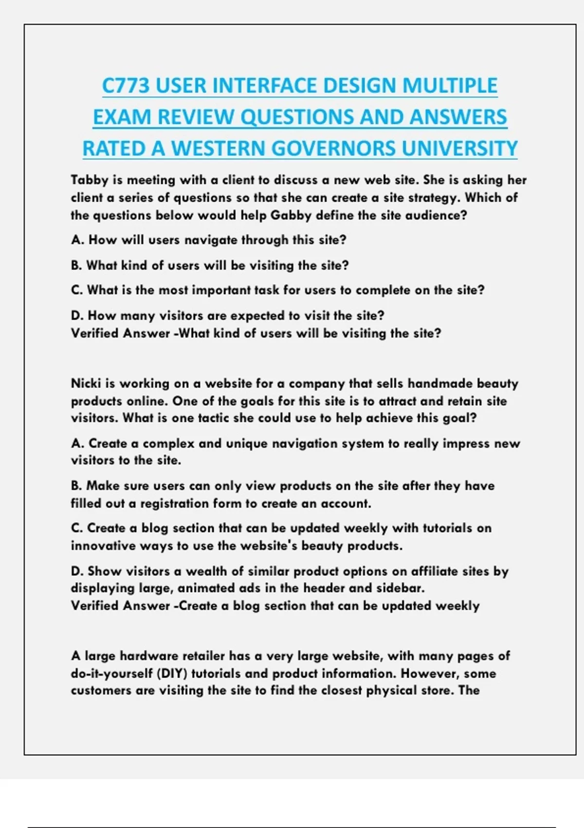 C773 USER INTERFACE DESIGN MULTIPLE EXAM REVIEW QUESTIONS AND ANSWERS RATED A WESTERN GOVERNORS UNIVERSITY