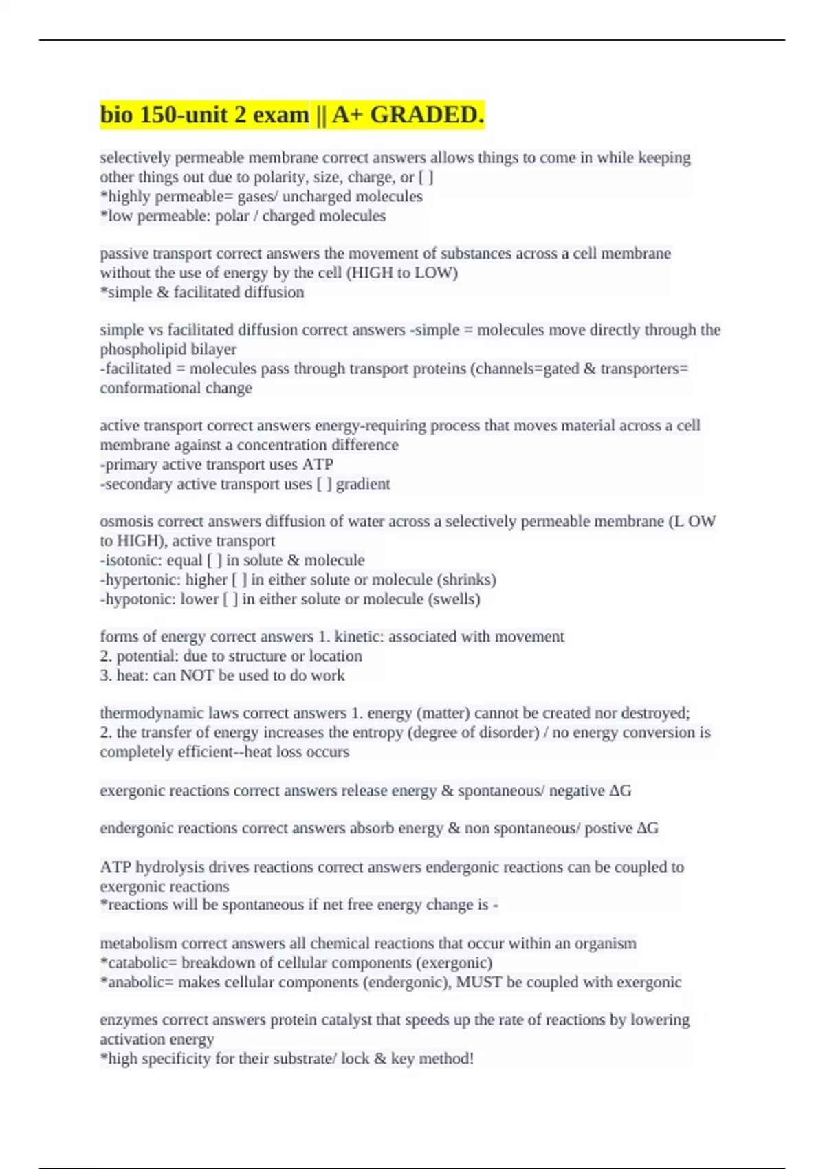 bio 150-unit 2 exam || A+ GRADED.