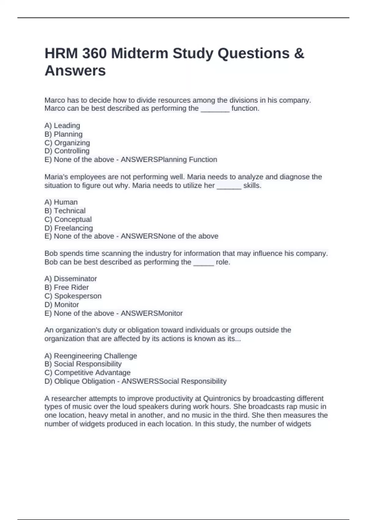 HRM 360 Midterm Study Questions & Answers