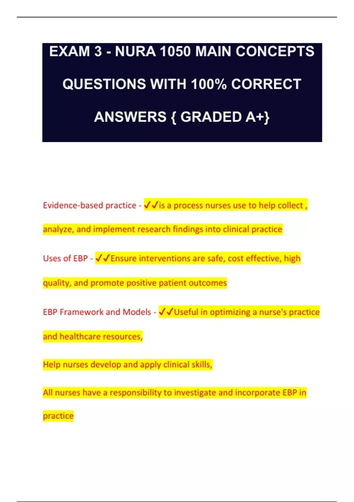 EBP Framework and Models - ✔✔Useful in optimizing a nurse's practice