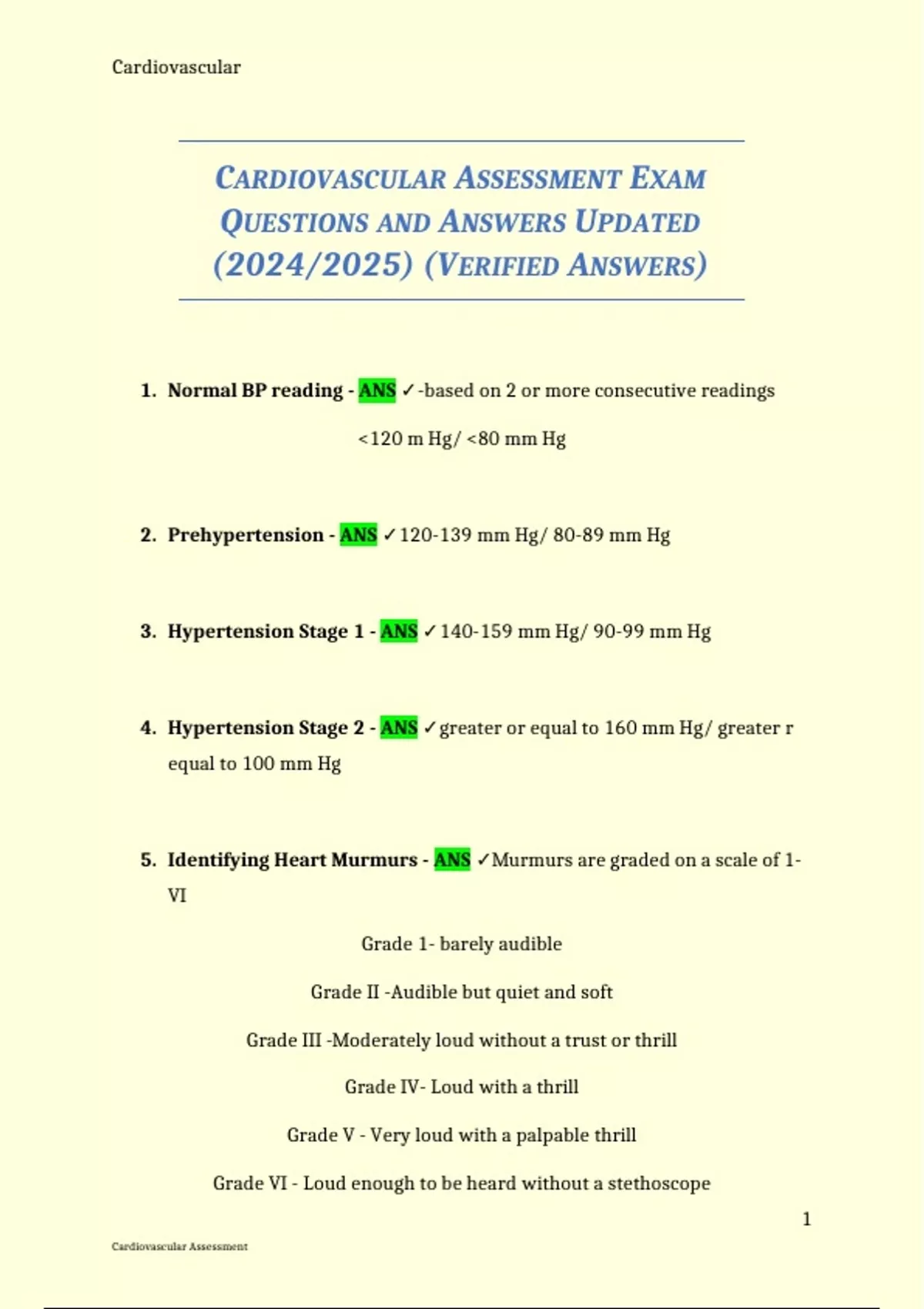5. Identifying Heart Murmurs - ANS ✓Murmurs are graded on a scale of 1-