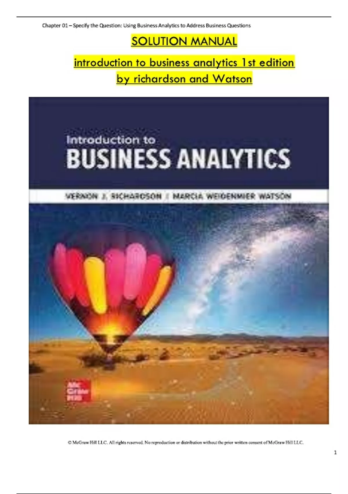 Solution Manual for Introduction to Business Analytics 1st Edition By Richardson and Watson All 1-12 Chapters Covered ,Latest Edition