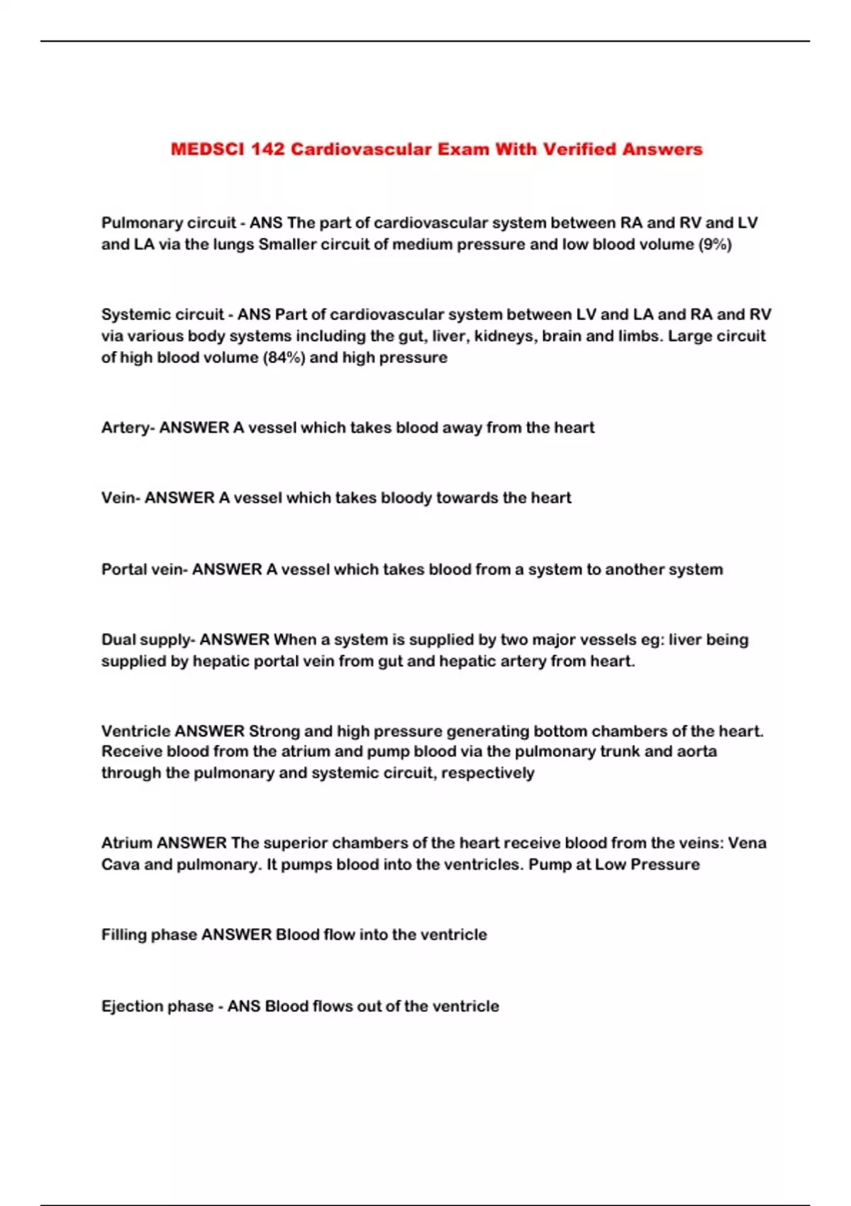 MEDSCI 142 Cardiovascular Exam With Verified Answers