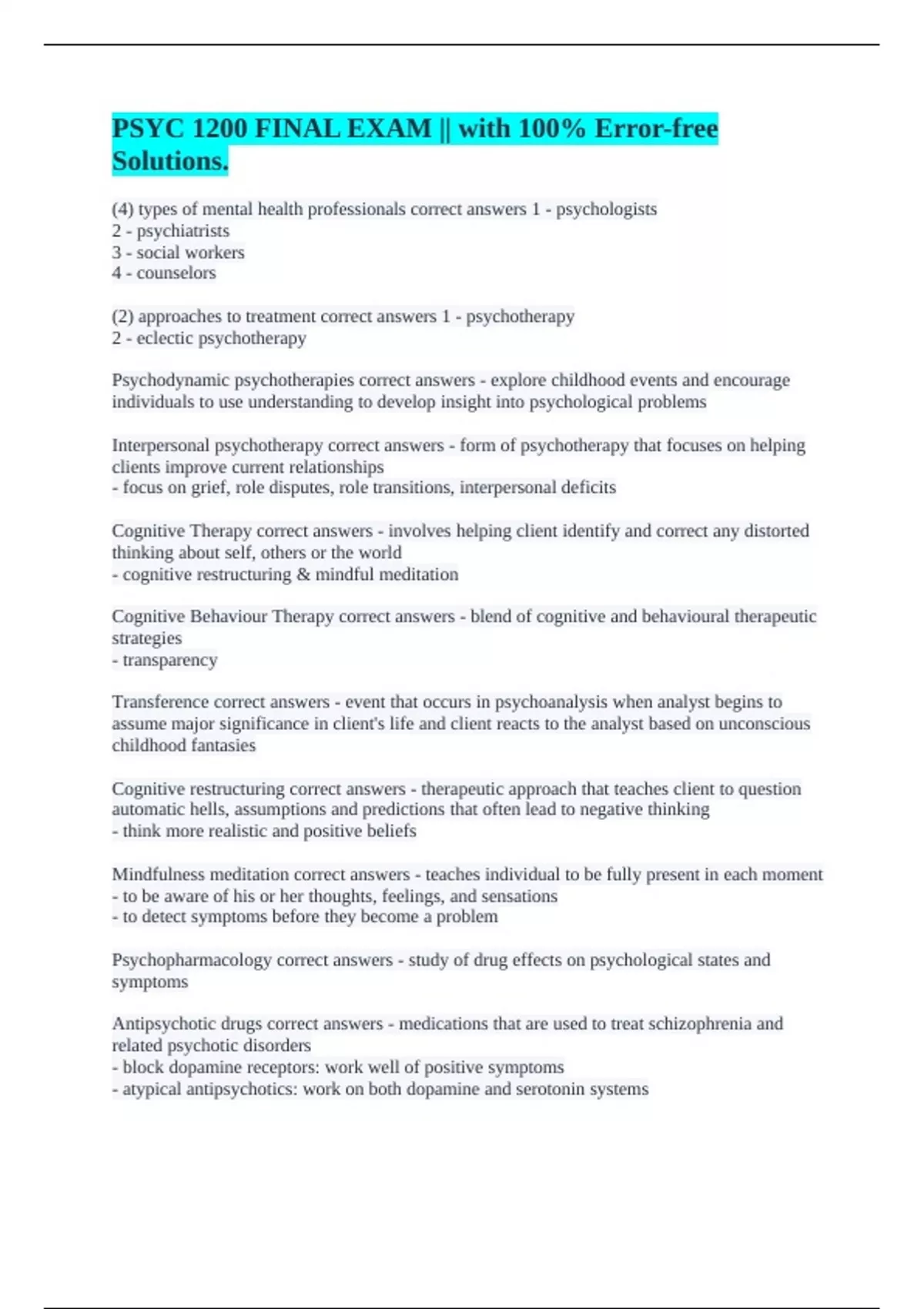 (2) approaches to treatment correct answers 1 - psychotherapy