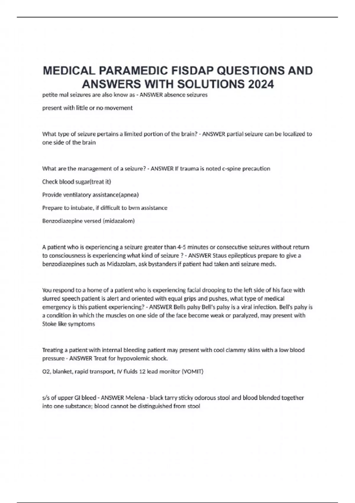 MEDICAL PARAMEDIC FISDAP QUESTIONS AND ANSWERS WITH SOLUTIONS 2024