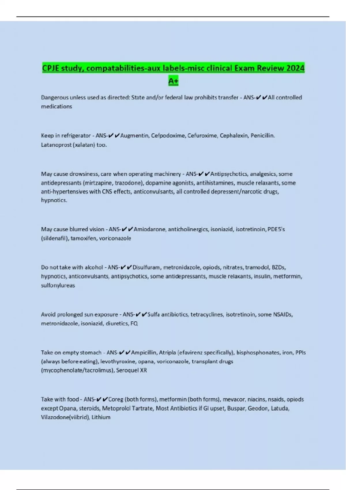 CPJE study, compatabilities-aux labels-misc clinical Exam Review 2024 A+