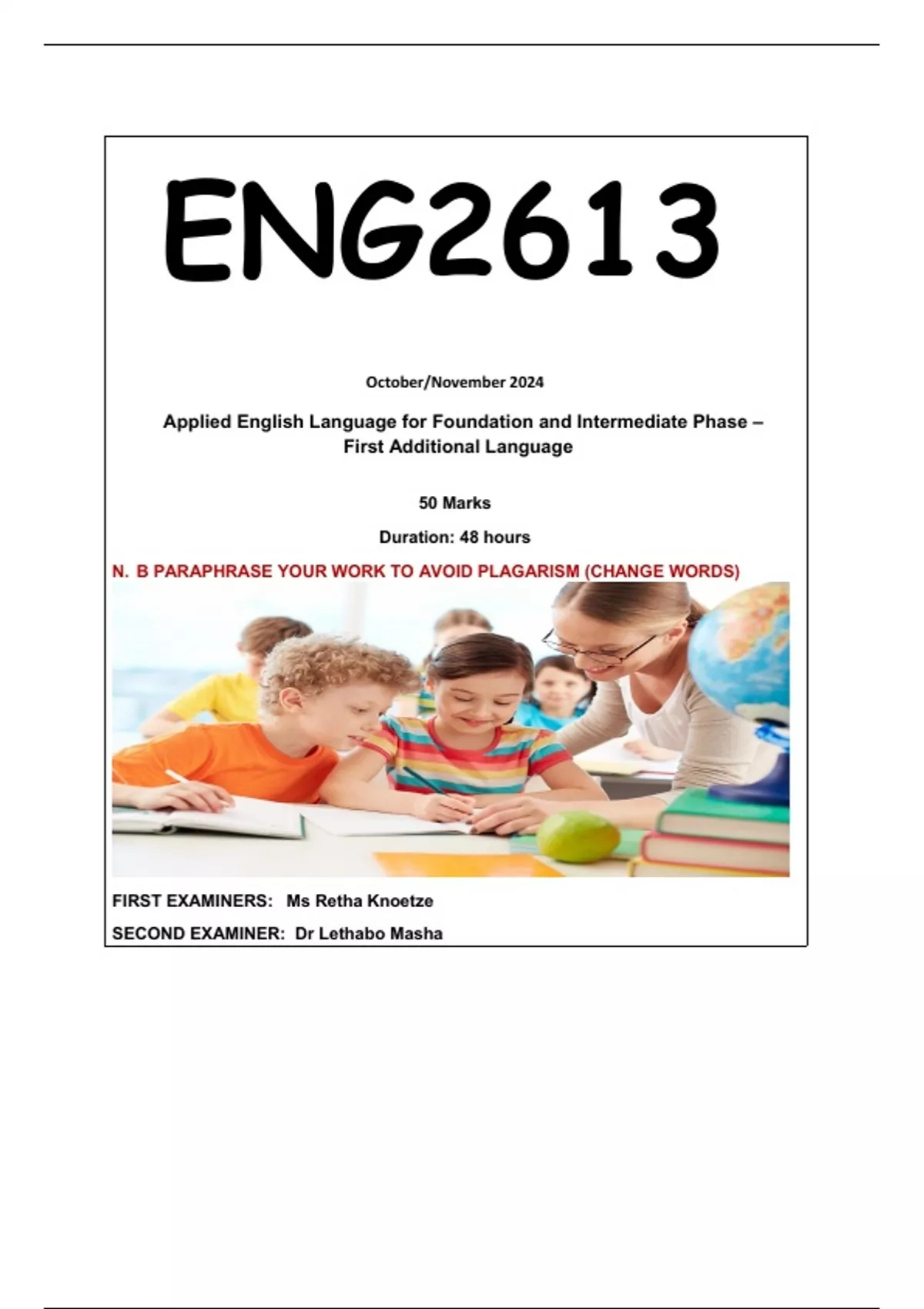 ENG2613 EXAM PORTFOLIO ANSWERS 2024