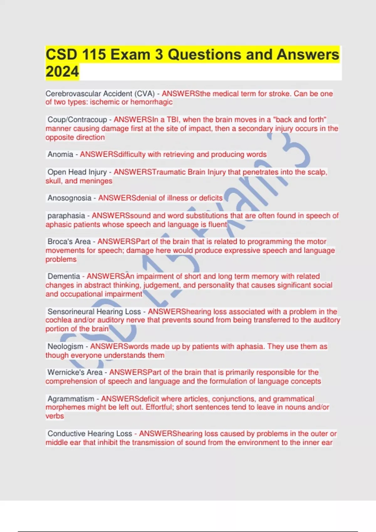 Dementia - ANSWERSAn impairment of short and long term memory with related