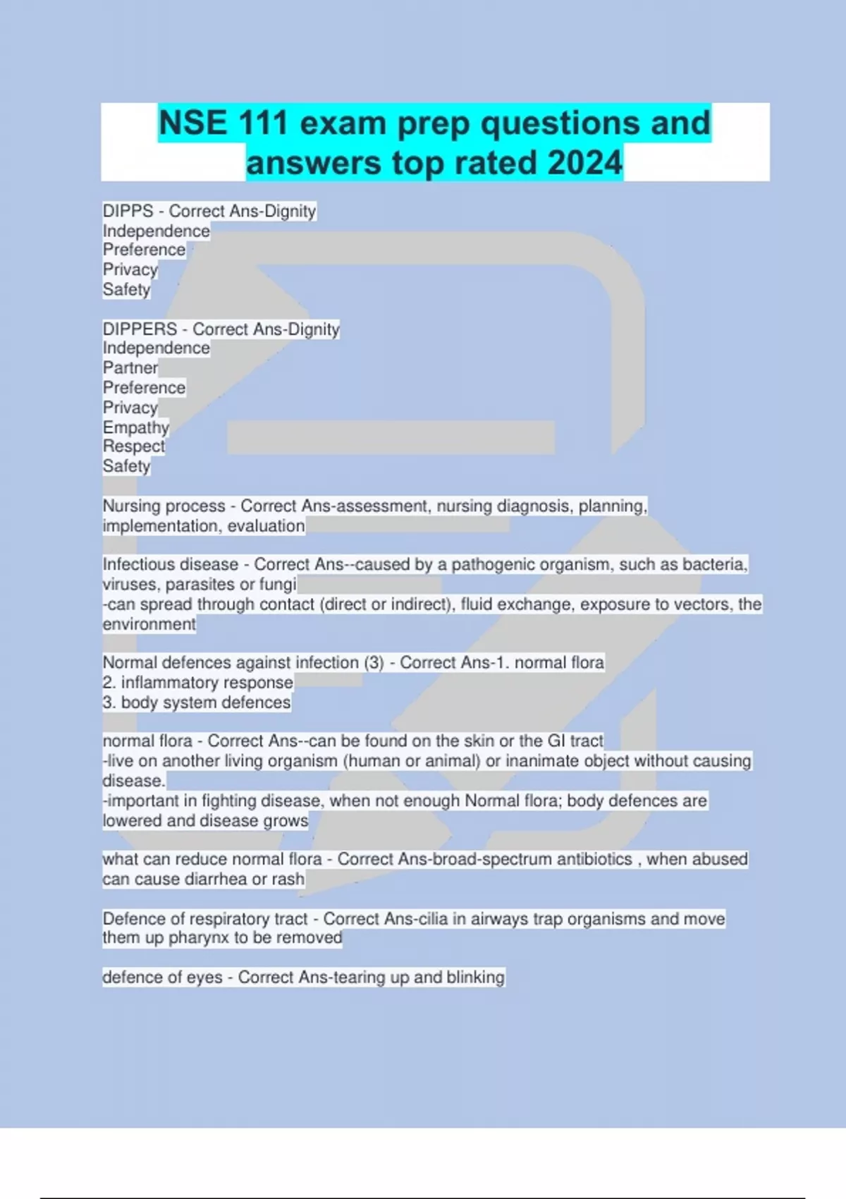 Normal defences against infection (3) - Correct Ans-1. normal flora