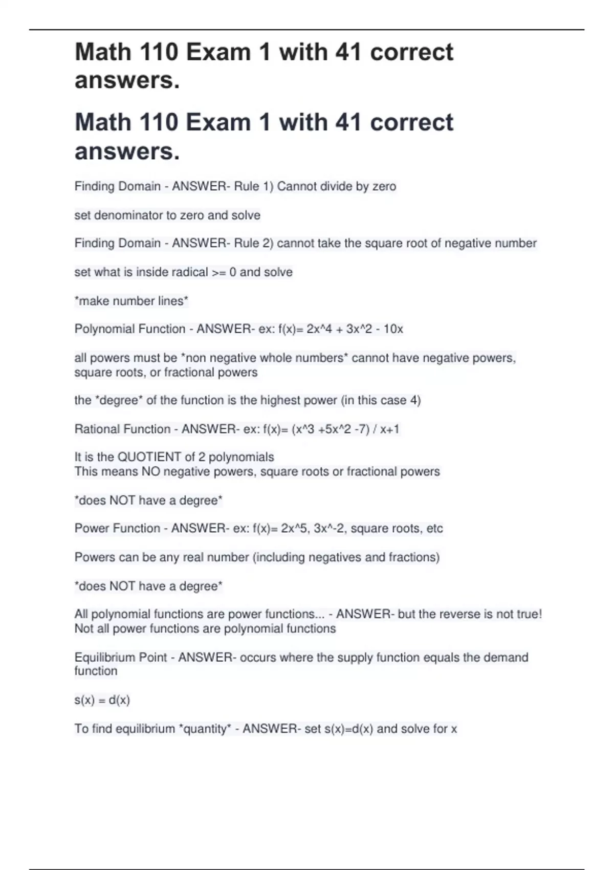 Math 110 Exam 1 with 41 correct