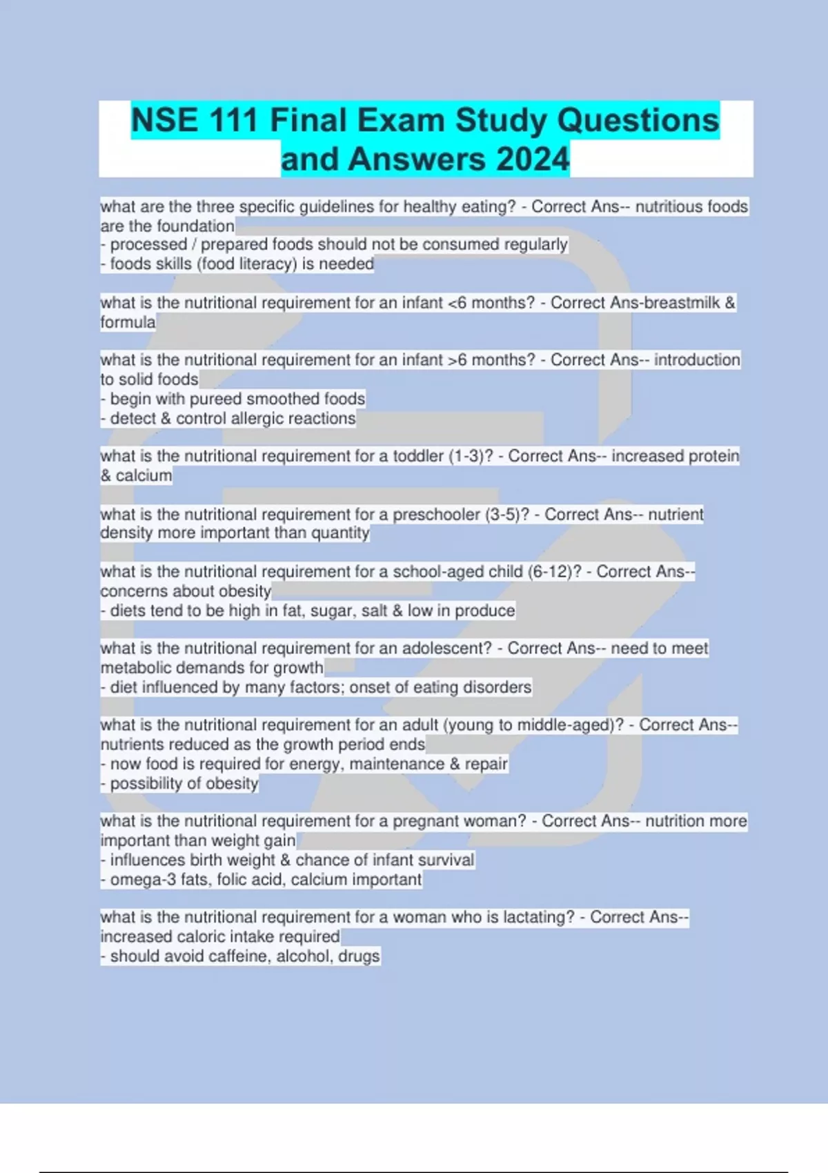 what is the nutritional requirement for an adolescent? - Correct Ans-- need to meet