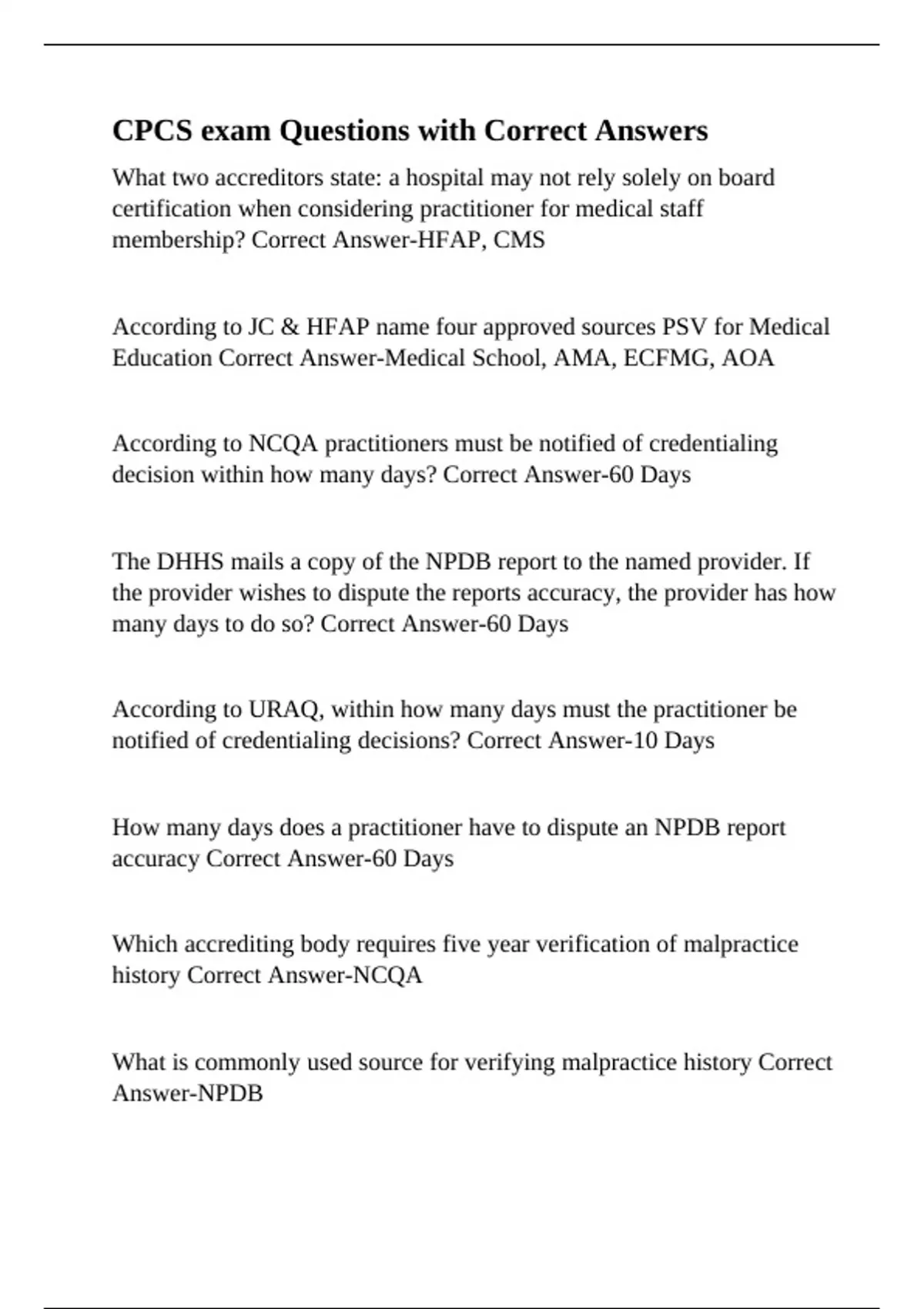 notified of credentialing decisions? Correct Answer-10 Days