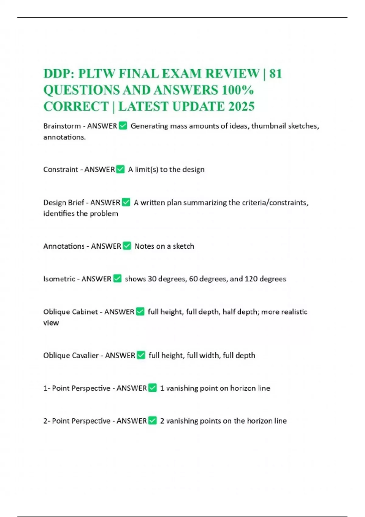DDP: PLTW FINAL EXAM REVIEW | 81 QUESTIONS AND ANSWERS 100% CORRECT | LATEST UPDATE 2025