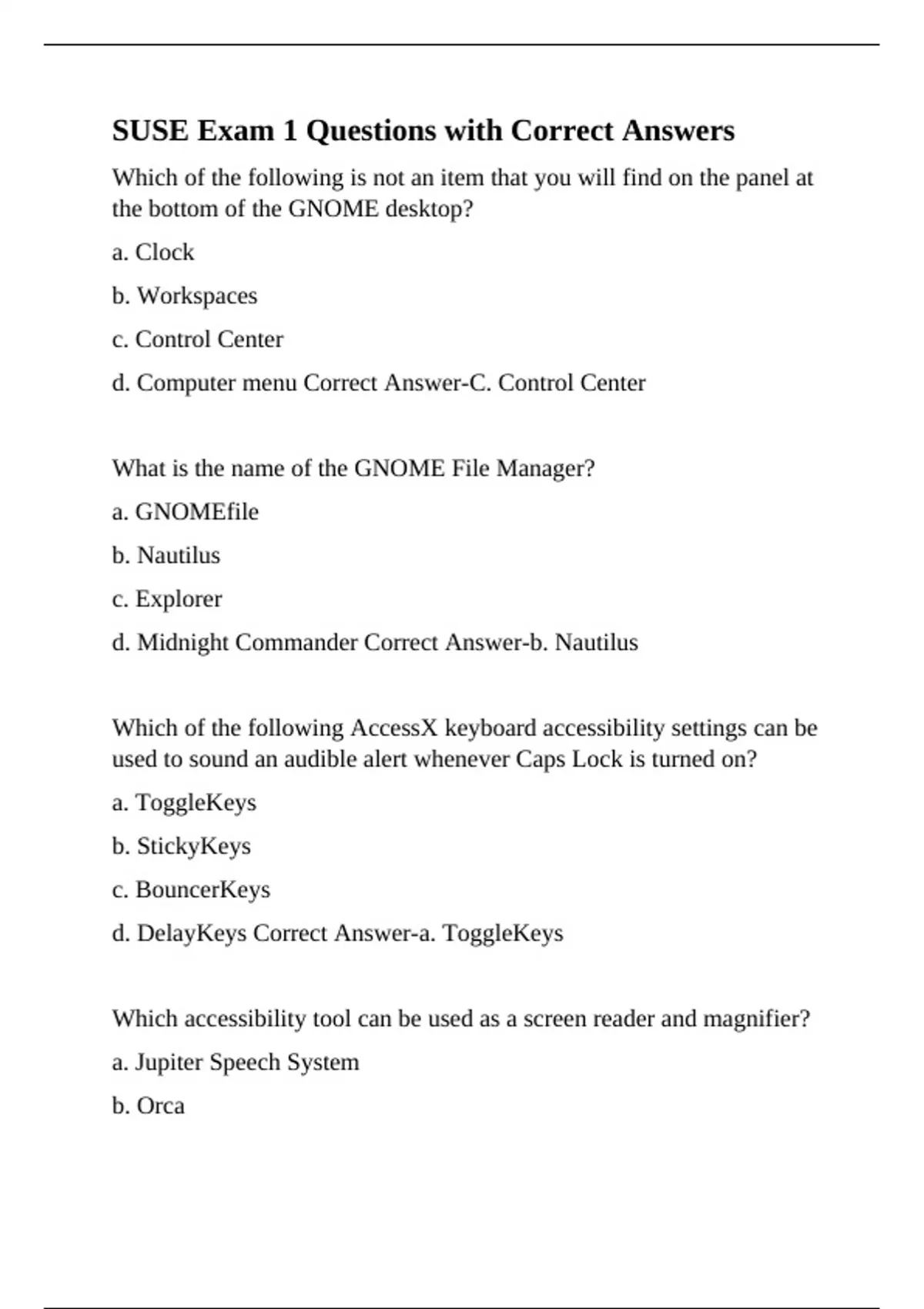 d. /usr/share/howto Correct Answer-a. /usr/share/doc