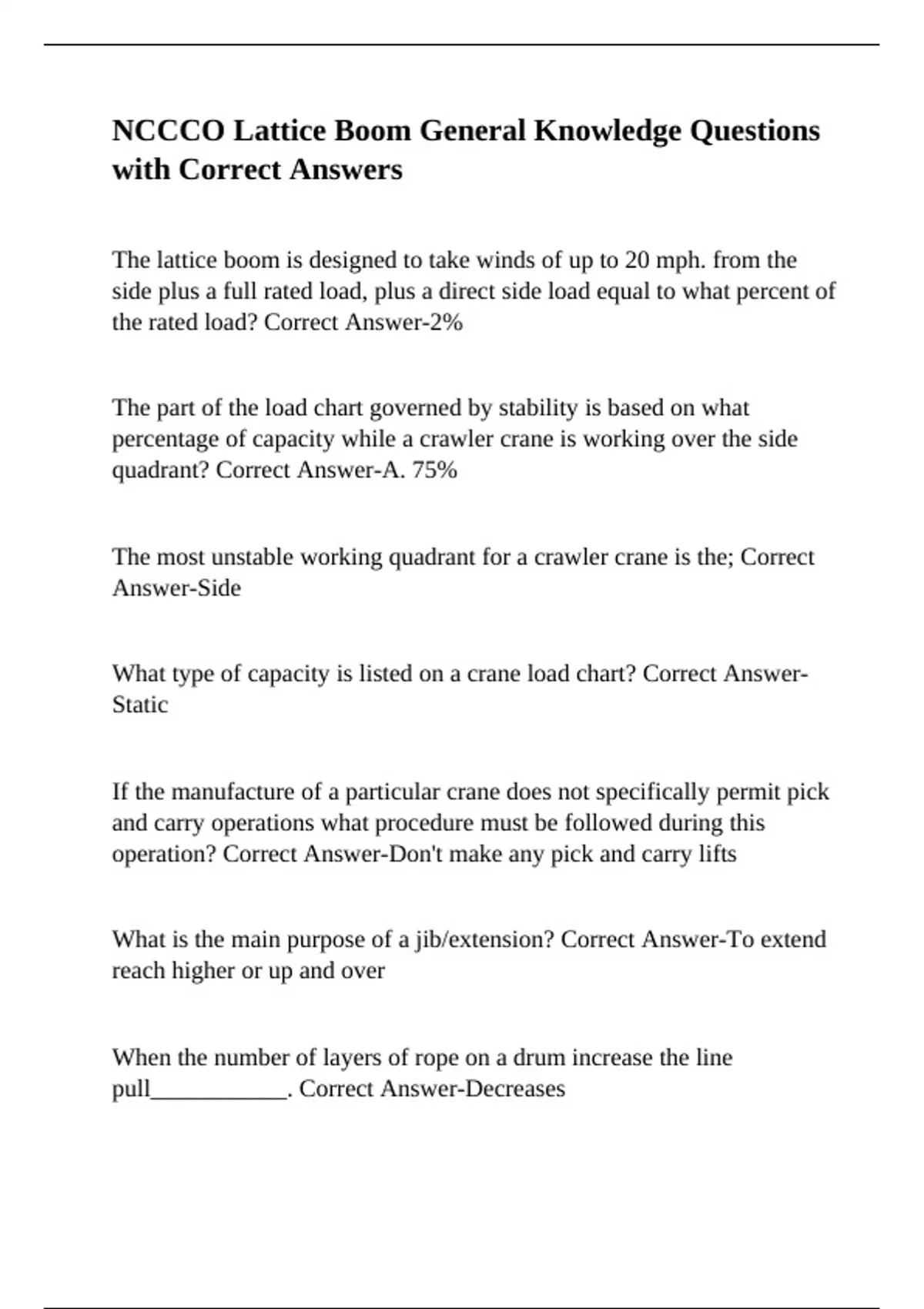 What type of capacity is listed on a crane load chart? Correct Answer-