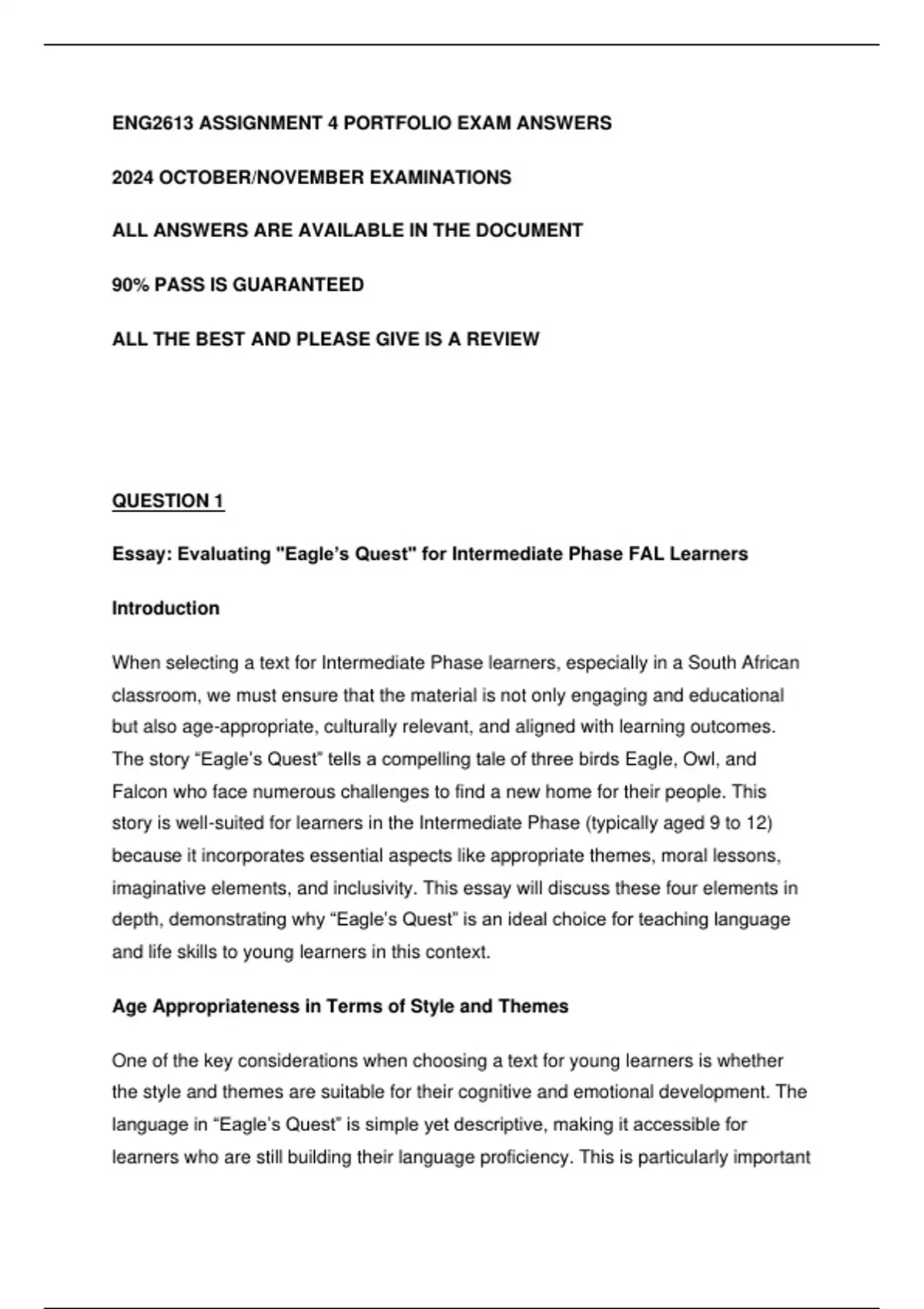 Essay: Evaluating "Eagle’s Quest" for Intermediate Phase FAL Learners