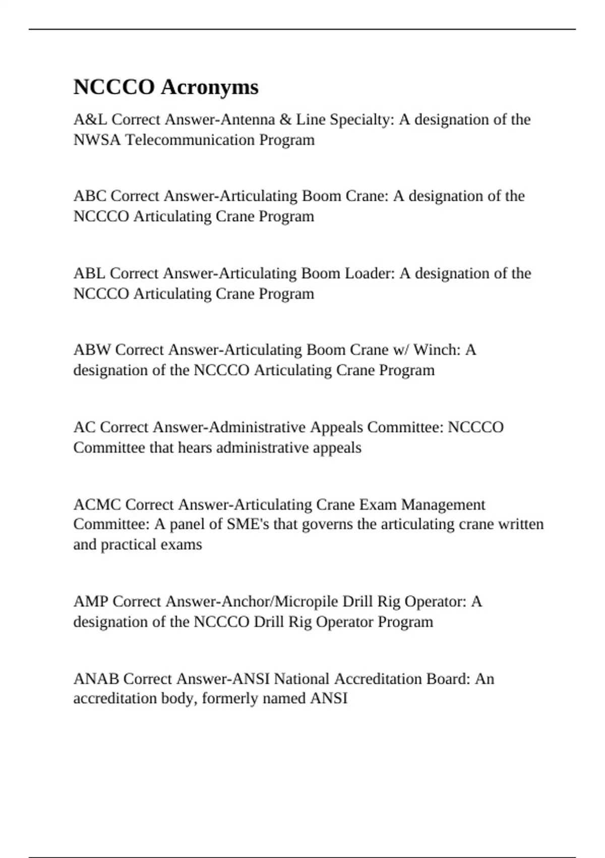 AC Correct Answer-Administrative Appeals Committee: NCCCO