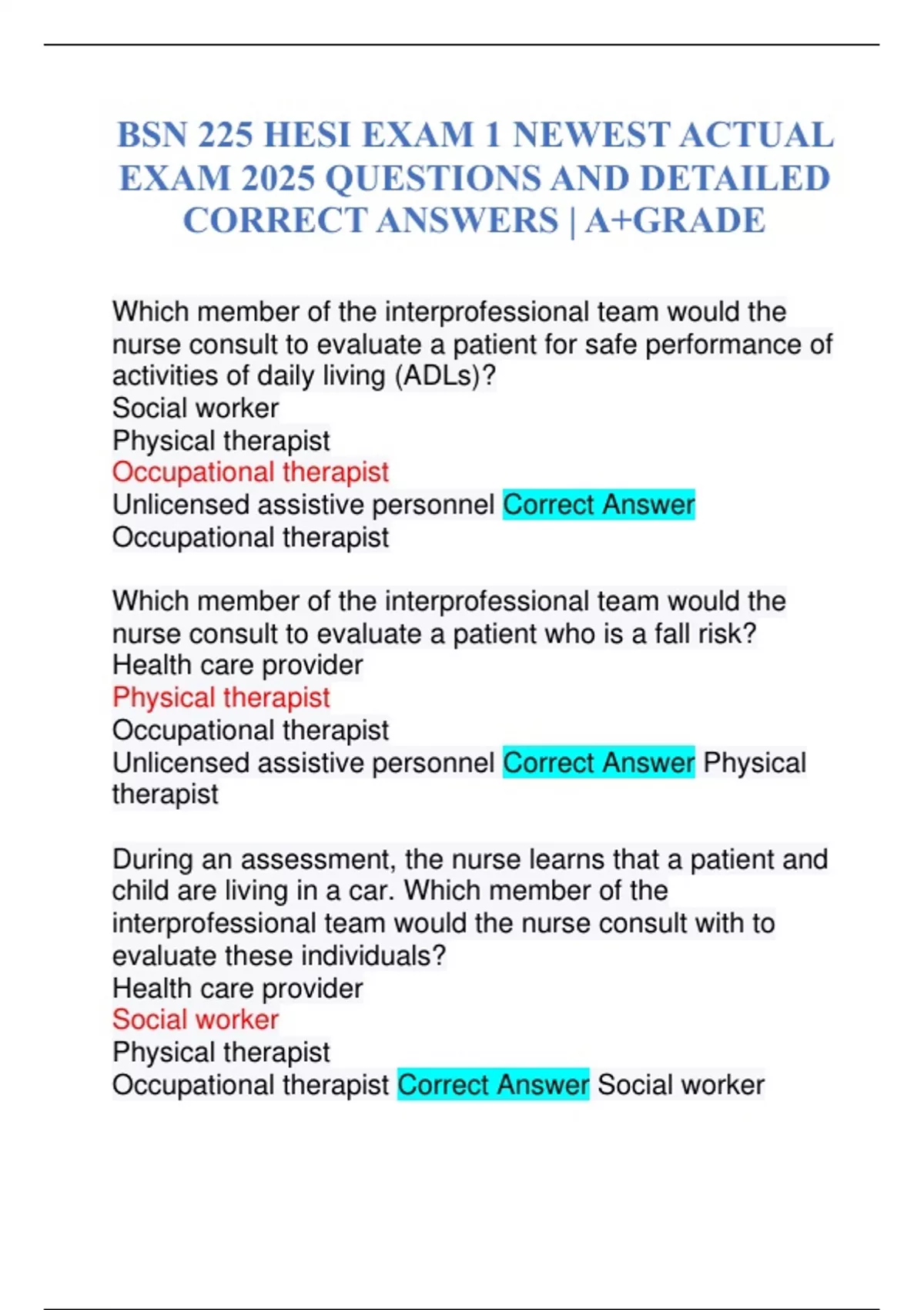Occupational therapist Correct Answer Social worker