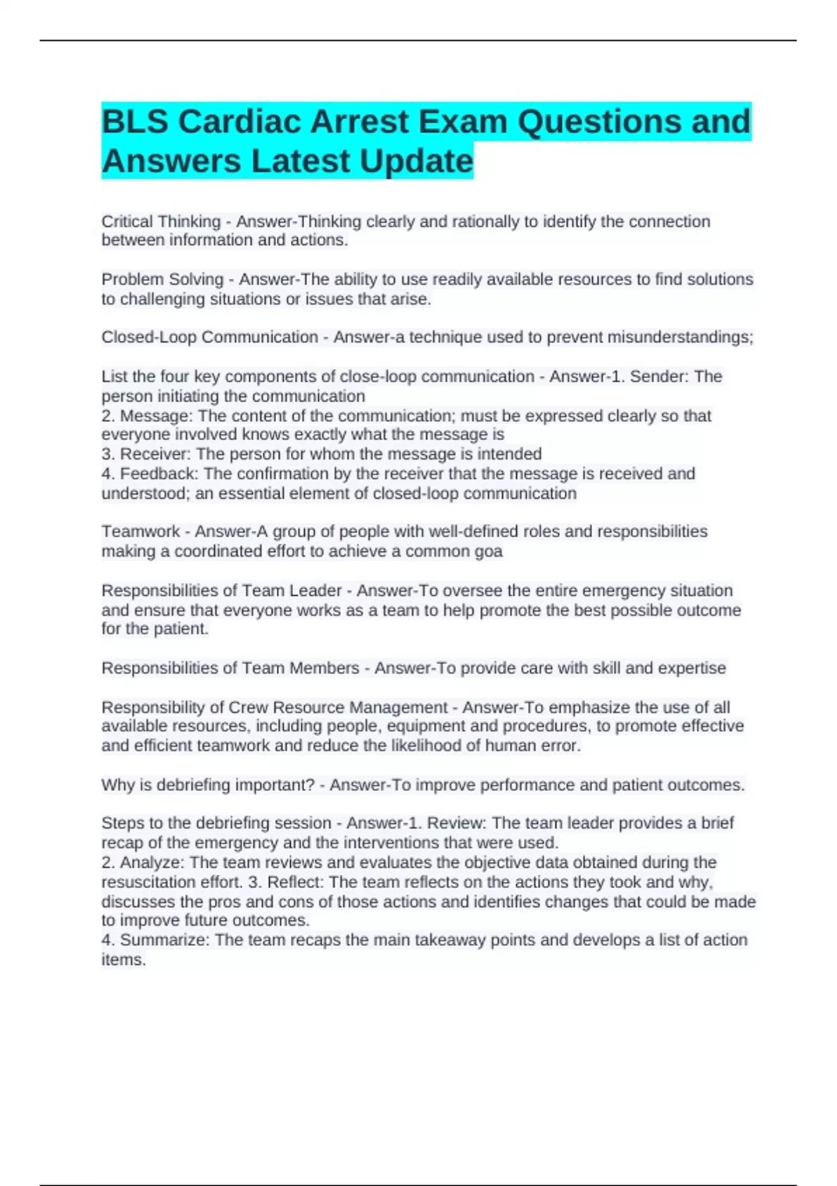 resuscitation effort. 3. Reflect: The team reflects on the actions they took and why,