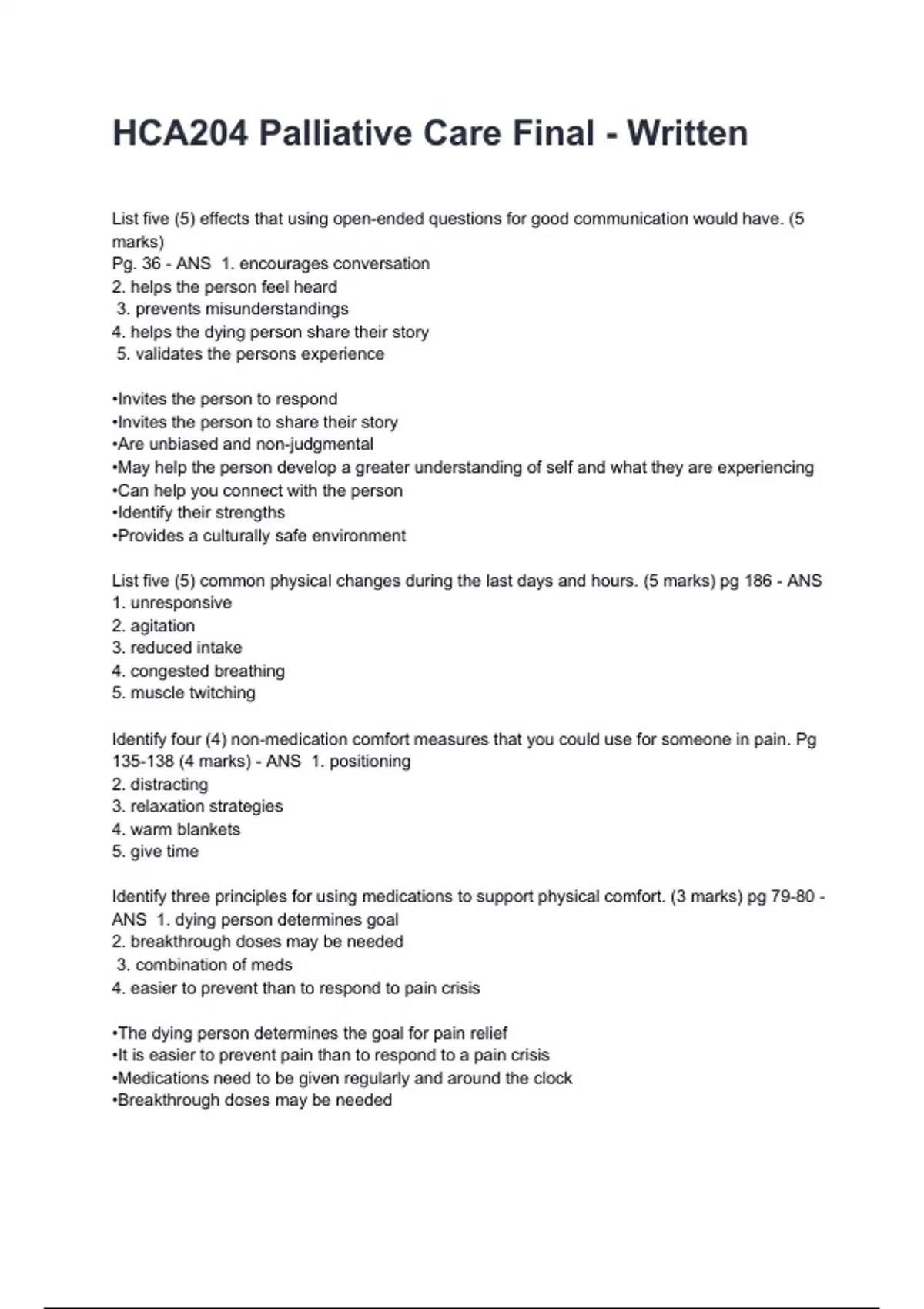 Identify three principles for using medications to support physical comfort. (3 marks) pg 79-80 -