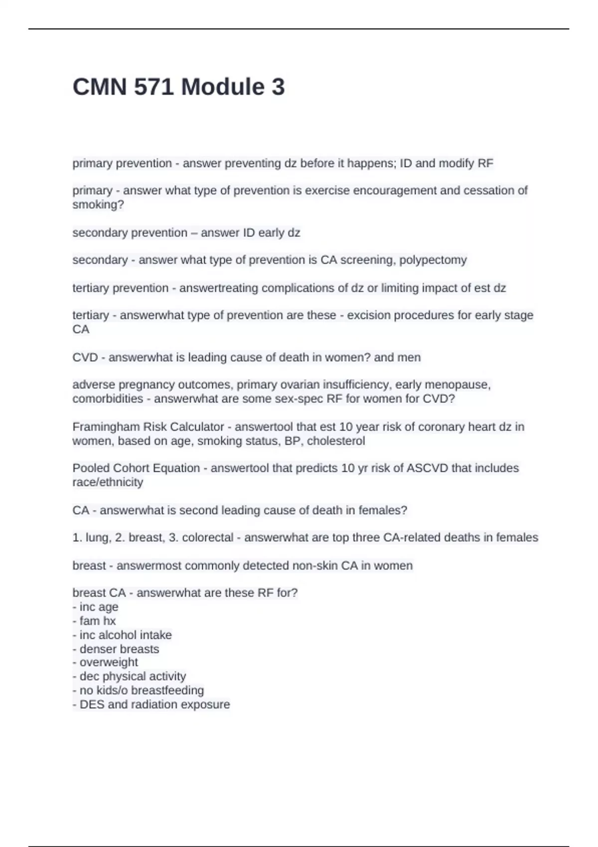 primary prevention - answer preventing dz before it happens; ID and modify RF