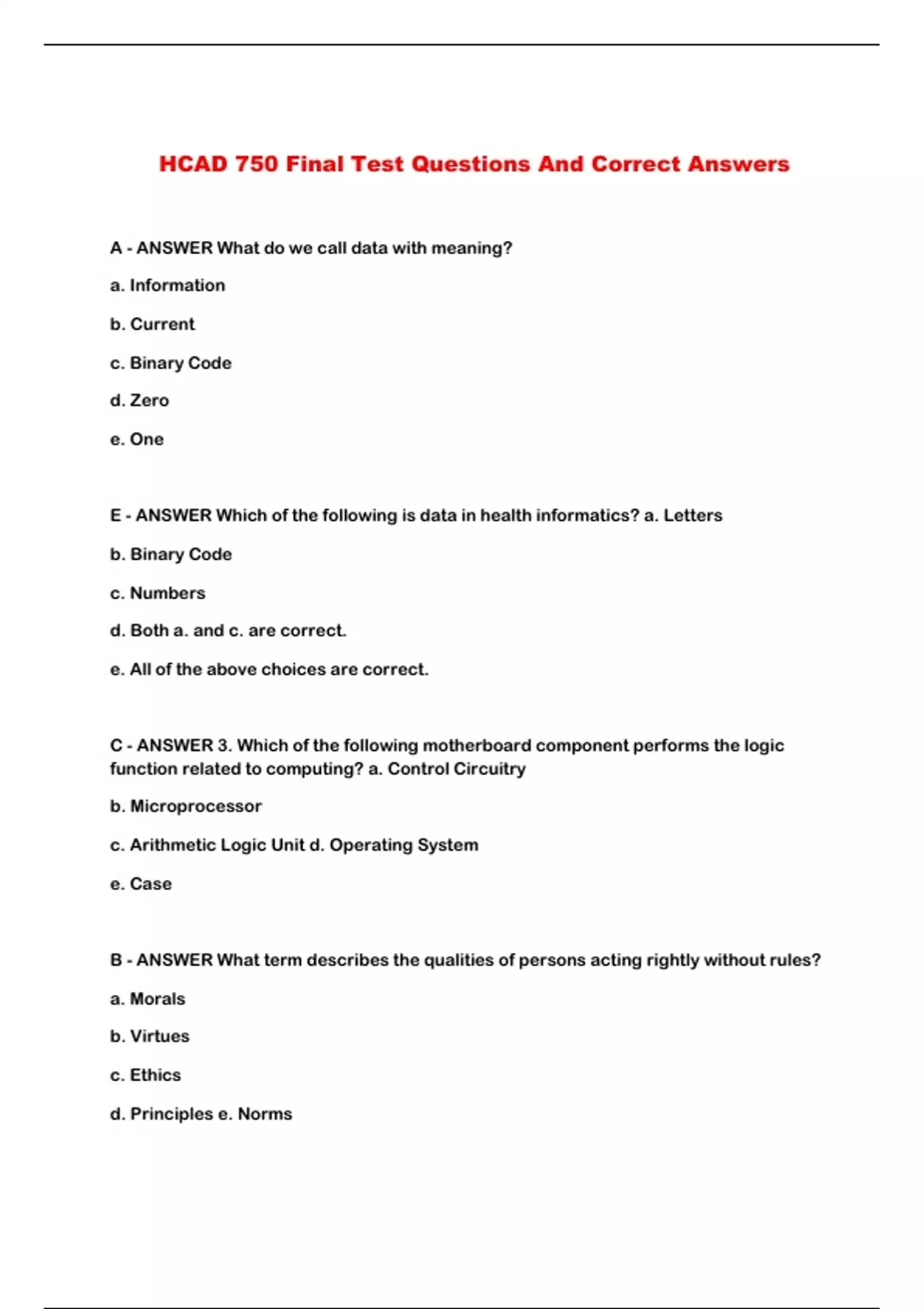 E - ANSWER Which of the following is data in health informatics? a. Letters