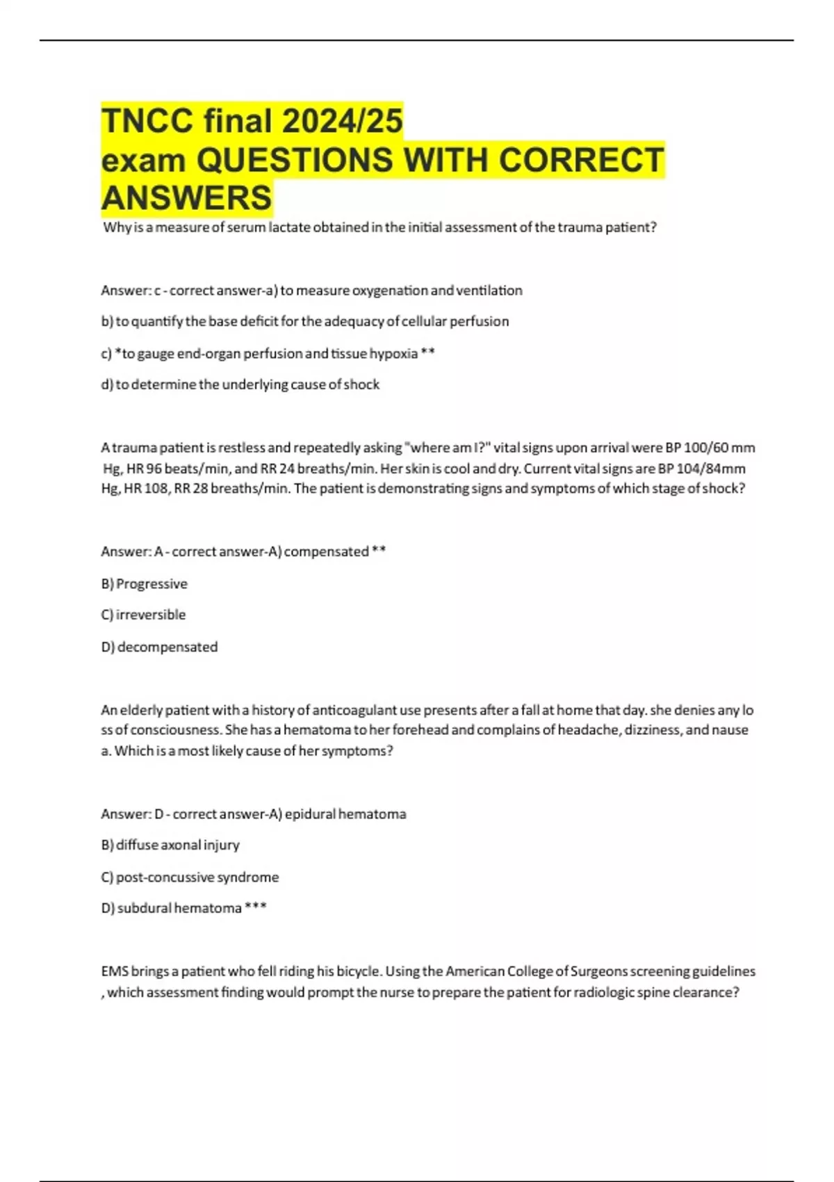 exam QUESTIONS WITH CORRECT