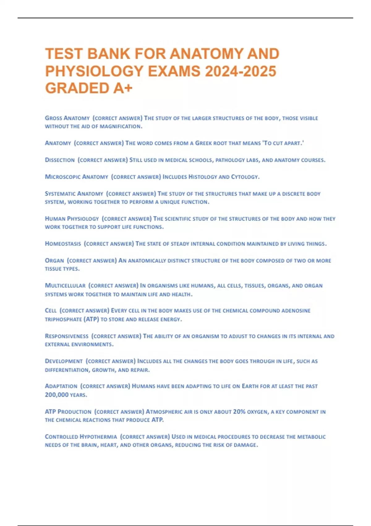 TEST BANK FOR ANATOMY AND PHYSIOLOGY EXAMS GRADED A+