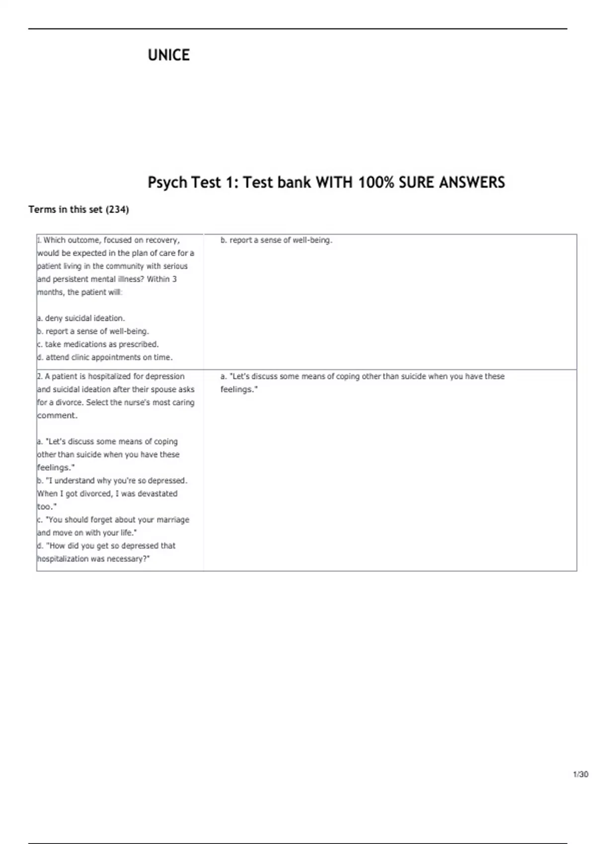 Psych Test 1_ Test bank WITH 100- SURE ANSWERS