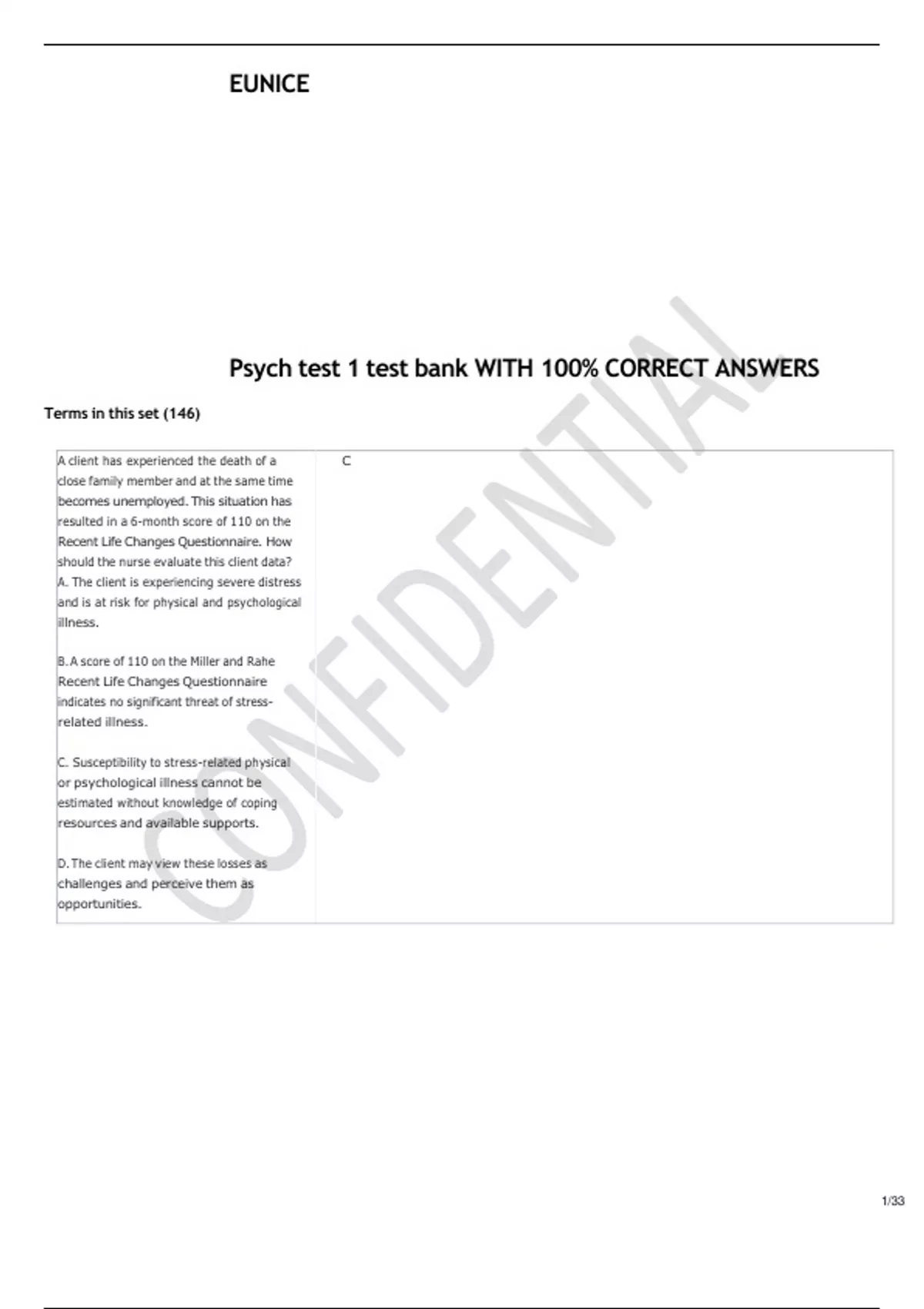 Psych test 1 test bank WITH 100- SURE ANSWERS