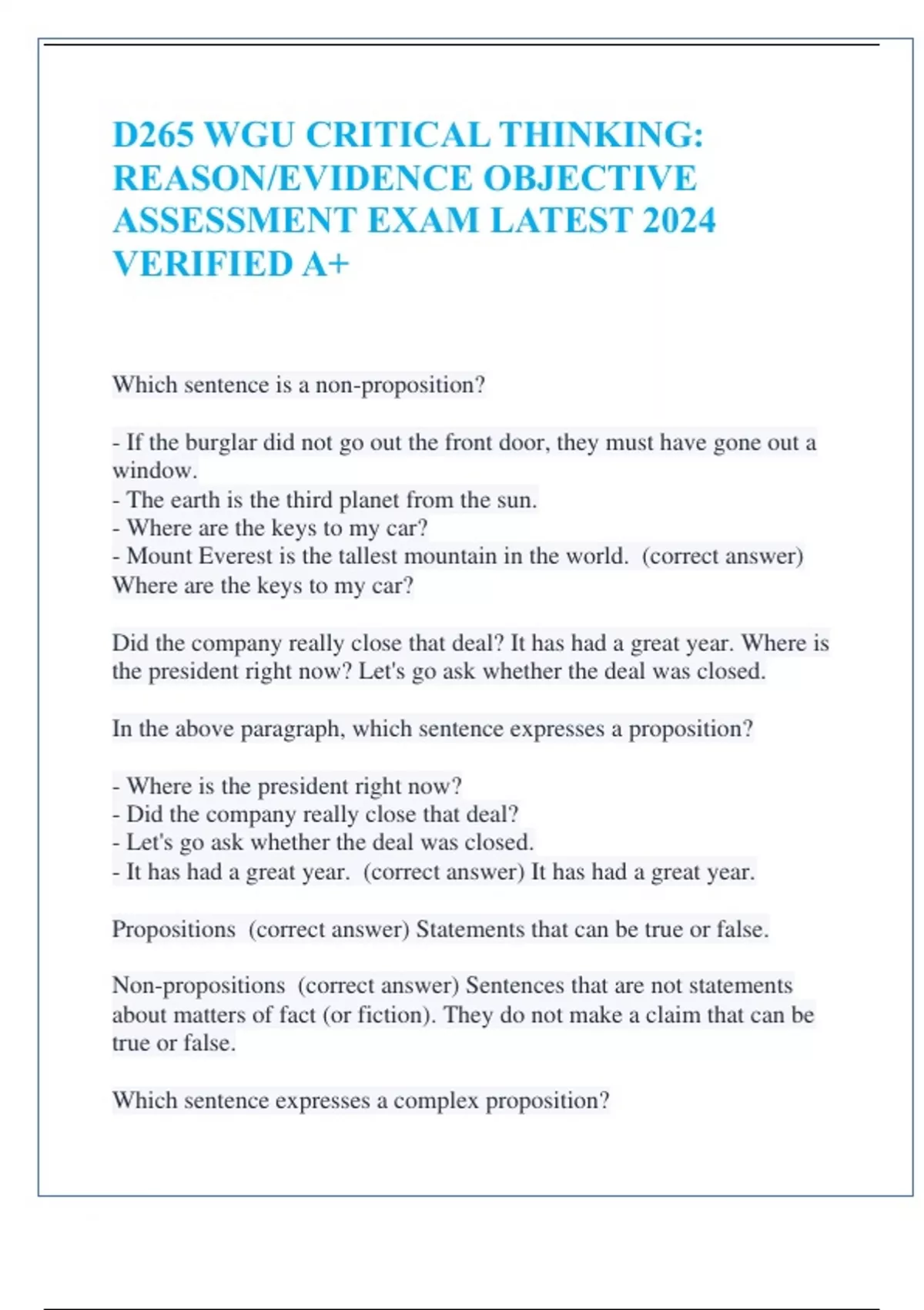 D265 WGU CRITICAL THINKING: REASON/EVIDENCE OBJECTIVE ASSESSMENT EXAM LATEST 2024 VERIFIED A+