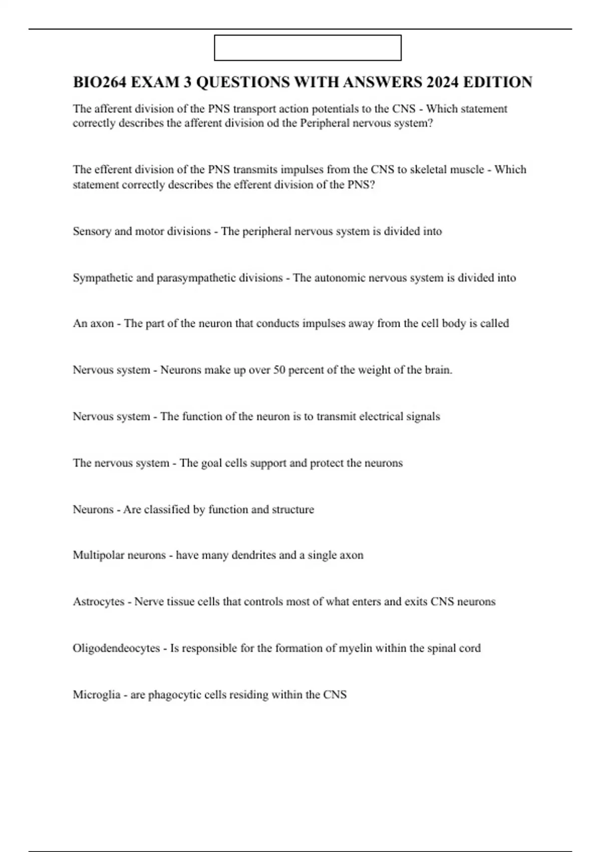 BIO264 EXAM 3 QUESTIONS WITH ANSWERS 2024 EDITION