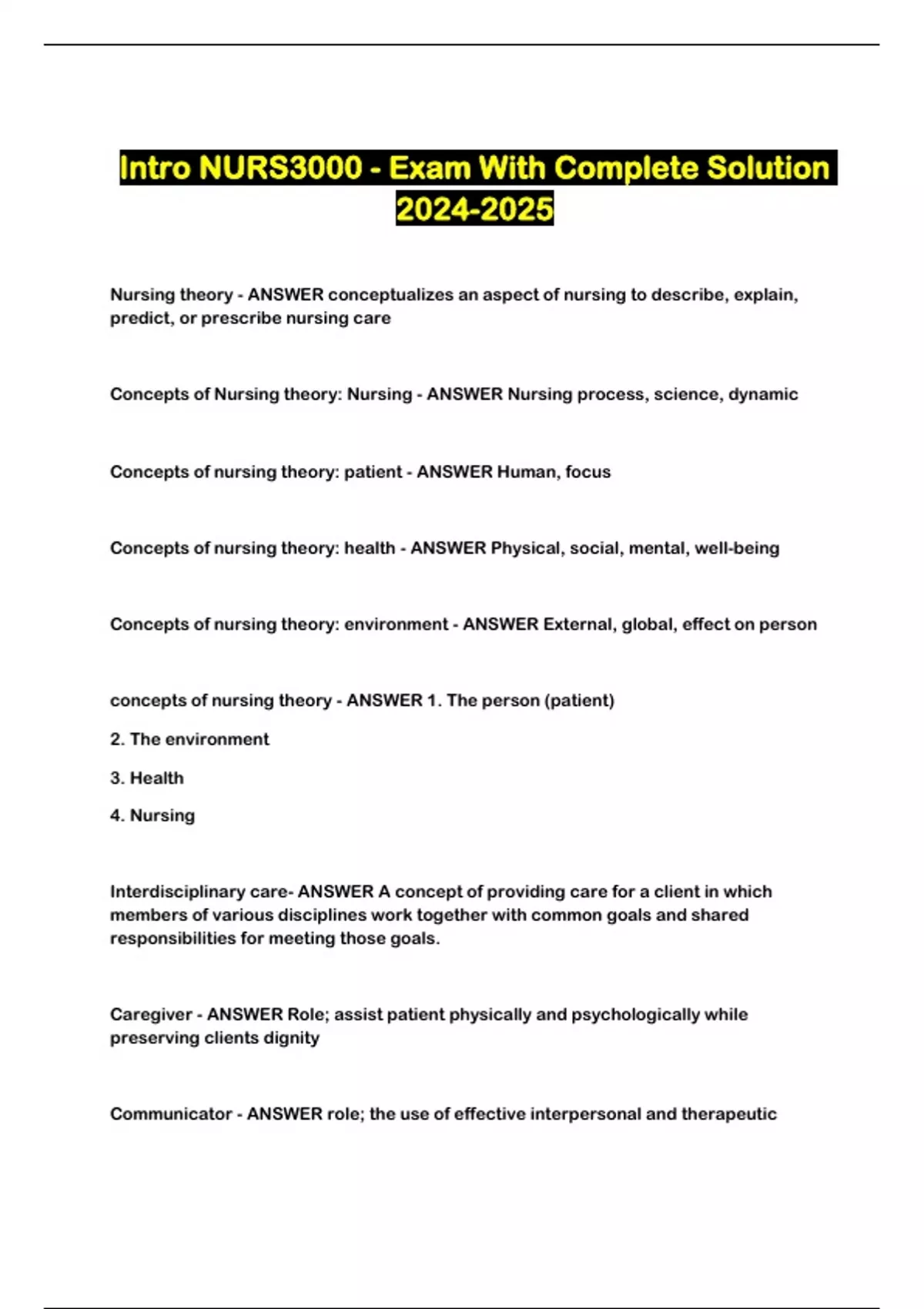 Intro NURS3000 - Exam With Complete Solution ...